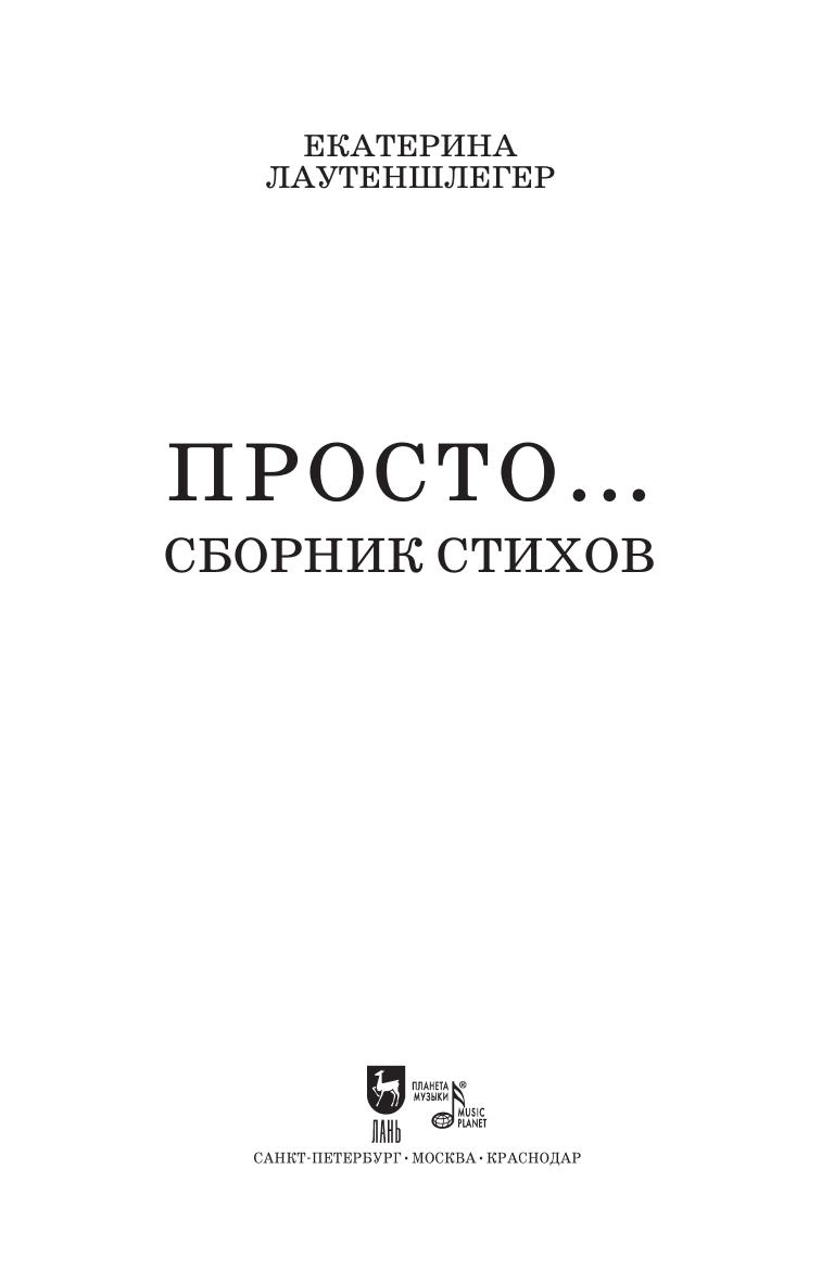 Перед вами второй сборник стихов Екатерины Лаутеншлегер "Просто…". В него включены стихи о любви в самом широком смысле этого слова.