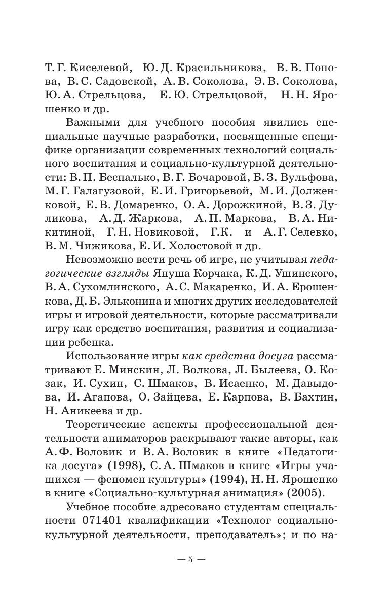 В учебном пособии раскрываются теоретические и практические аспекты рекреативных технологий, игровой деятельности, характеризуются разновидности игровых, развлекательно-игровых, конкурсных и других видов программ. Соответствует современным требованиям Федерального государственного образовательного стандарта среднего профессионального образования и профессиональным квалификационным требованиям. Пособие предназначено для обучающихся ссузов, для преподавателей, ведущих специальные дисциплины, а также для работников социально-культурной сферы. The methodical textbook reveals the theoretical and practical sides of recreational technologies, gaming activities, characterizes the different types of gaming, entertaining and gaming, competitive and other kinds of programs. Corresponds to the modern requirements of the Federal State Educational Standard of Secondary Vocational Education and professional qualification requirements. The textbook is intended for students of сolleges, for teachers of special subjects, and also for those involved in a socio-cultural sphere.