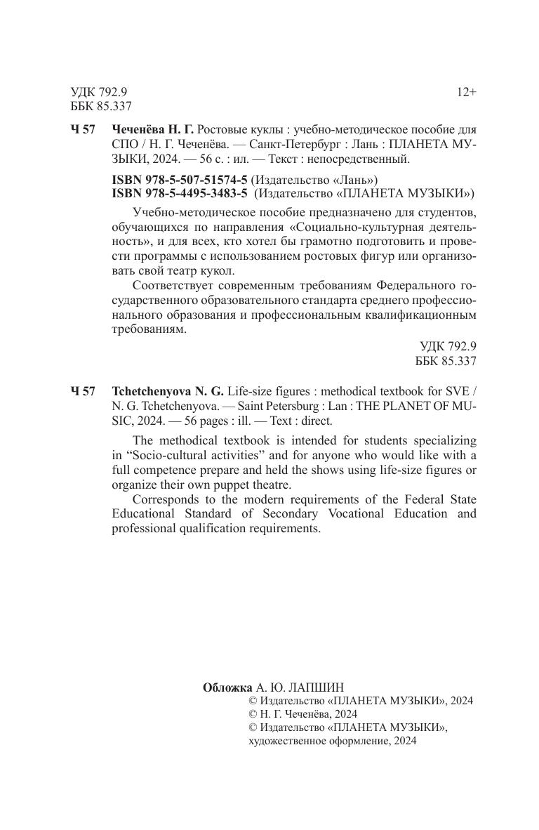 Учебно-методическое пособие предназначено для студентов, обучающихся по направления «Социально-культурная деятельность», и для всех, кто хотел бы грамотно подготовить и провести программы с использованием ростовых фигур или организовать свой театр кукол. Соответствует современным требованиям Федерального государственного образовательного стандарта среднего профессионального образования и профессиональным квалификационным требованиям. The methodical textbook is intended for students specializing in “Socio-cultural activities” and for anyone who would like with a full competence prepare and held the shows using life-size figures or organize their own puppet theatre. Corresponds to the modern requirements of the Federal State Educational Standard of Secondary Vocational Education and professional qualification requirements.