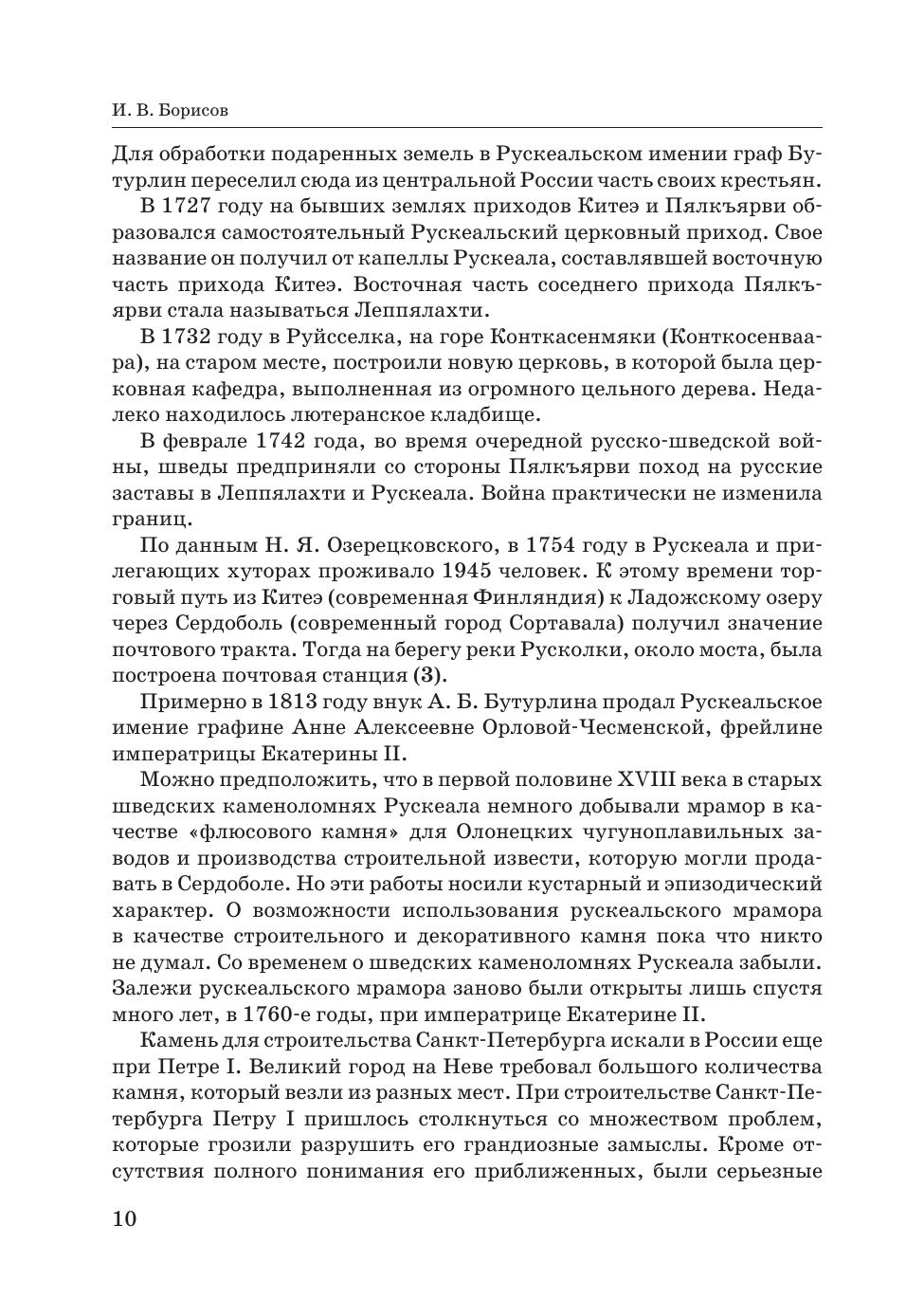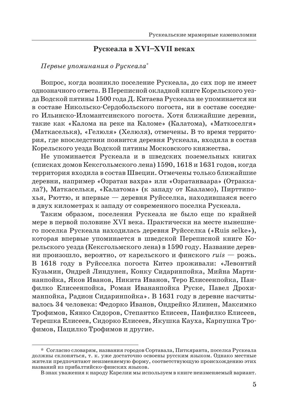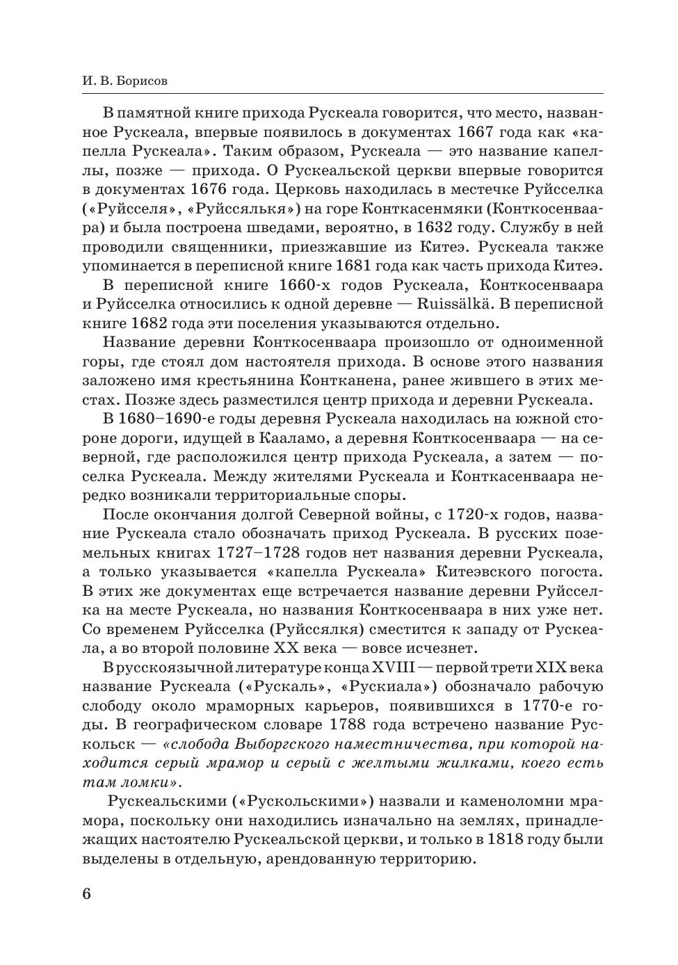 Горный парк «Рускеала» — объект культурного наследия и главный туристический комплекс Республики Карелия. На месте заполненного грунтовыми водами бывшего карьера до 1990-х годов функционировал мраморно-известковый завод, а каменоломни Рускеалы начинают свою историю с 1765 году. В книге подробно рассказывается история добычи мрамора на Рускеальских мраморных ломках, о применении рускеальского мрамора в архитектуре Санкт-Петербурга. Книга полезна и интересна краеведам, историкам, географам, геологам, работникам музеев, экскурсоводам и туристам. Рекомендуется студентам, обучающимся по направлениям «Прикладная геология, горное дело, нефтегазовое дело и геодезия», «Архитектура», а также преподавателям. The Ruskeala Mountain Park is a cultural heritage location and the main tourist complex of the Republic of Karelia. There used to be a marble and lime factory at the place of a former quarry until the 1990s, while the Ruskeala quarries were started to be developed as far as in 1765. The book tells the detailed story of a marble mining at the Ruskeala marble quarries, and the use of Ruskeala marble in the architecture of St. Petersburg. The book is useful and interesting for local historians, geographers, geologists, museum workers, tour guides, and tourists.