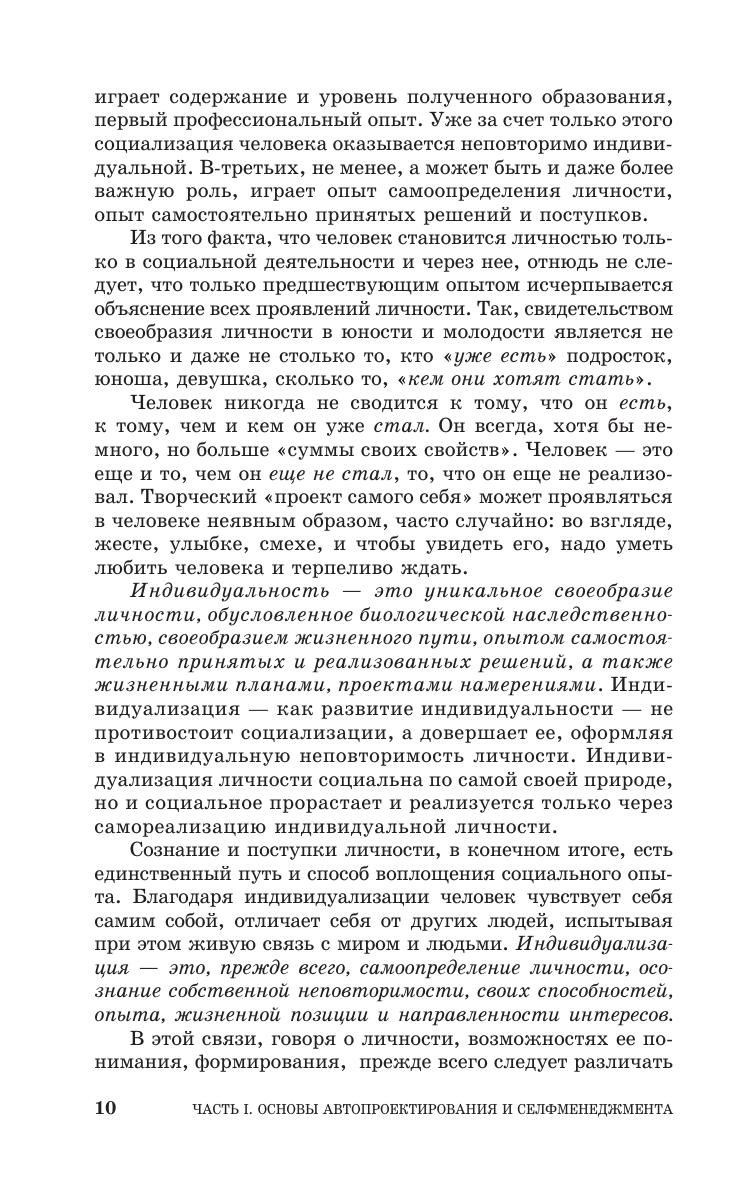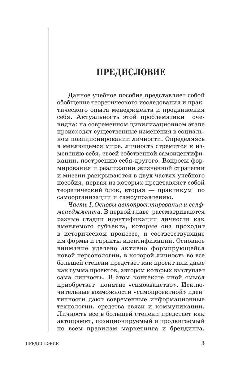 Обращение к селфменеджменту как многоуровневому процессу самоорганизации и самореализации личности открывает новые перспективы для личностного роста и самоопределения, профессионального продвижения. Учебное пособие предоставляет возможность сформировать и реализовать жизненную стратегию и миссию, опираясь на концепцию личности как автопроекта, и несущей ответственность за его реализацию. Оно состоит из теоретической части и практикума по селфменеджменту.