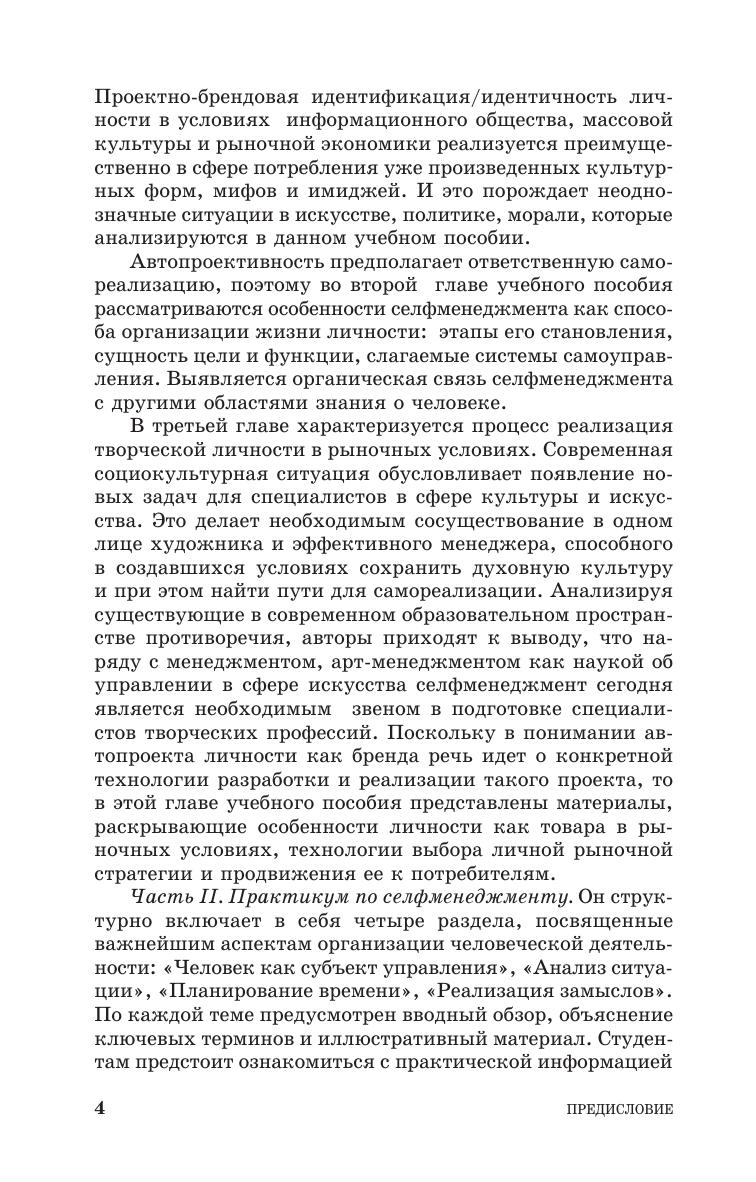 Пособие предназначено, прежде всего, для студентов вузов культуры и искусства, а также может представлять интерес для молодых специалистов и всех, интересующихся вопросами самоуправления и самопродвижения.