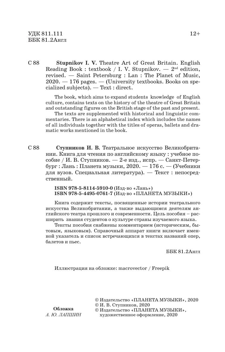 Книга содержит тексты, посвященные истории театрального искусства Великобритании, а также выдающимся деятелям английского театра прошлого и современности. Цель пособия - расширить знания студентов о культуре страны изучаемого языка.