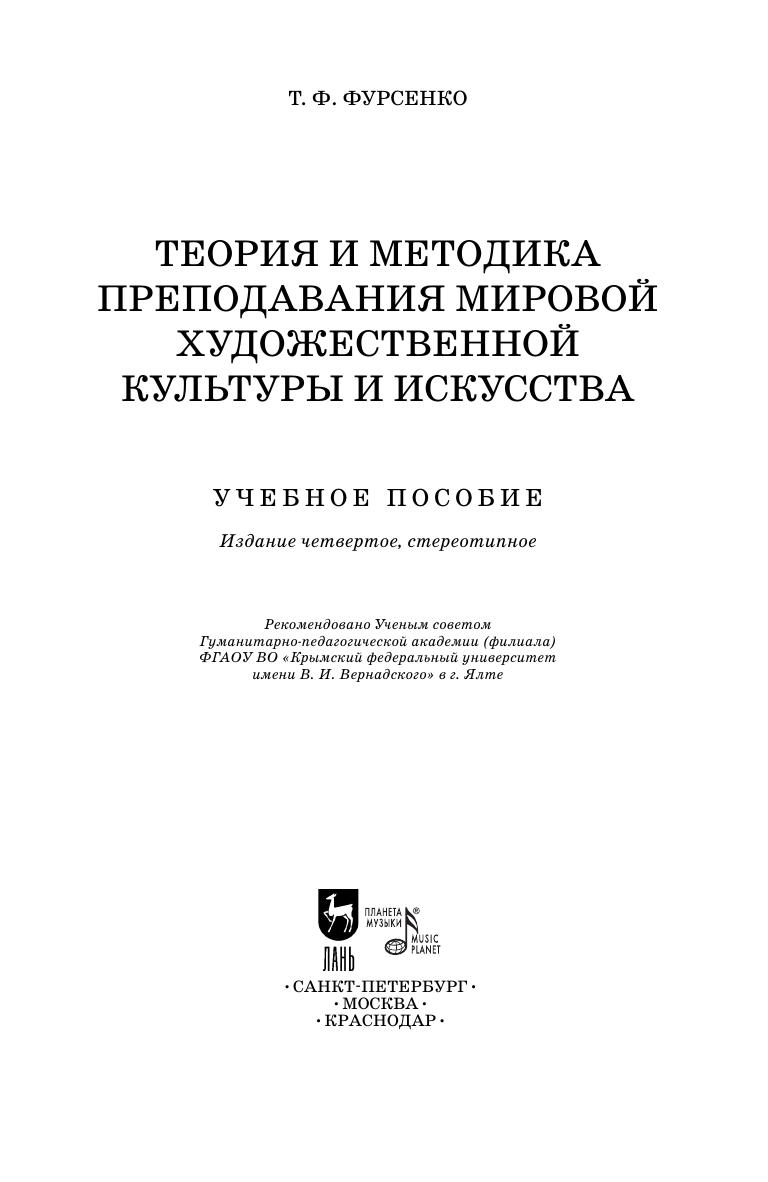 Теория и методика преподавания мировой художественной культуры и искусства