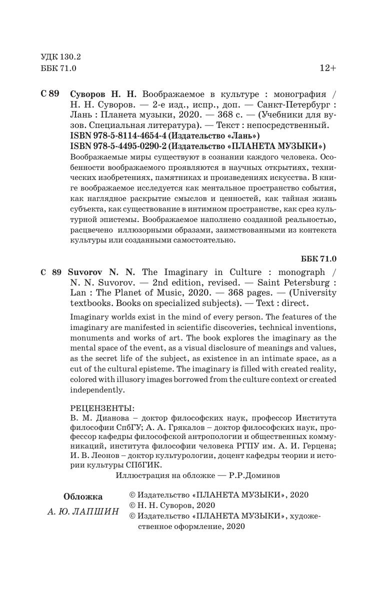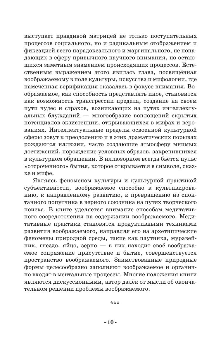 Воображаемые миры существуют в сознании каждого человека. Особенности воображаемого проявляются в научных открытиях, технических изобретениях, памятниках и произведениях искусства. В книге воображаемое исследуется как ментальное пространство события, как наглядное раскрытие смыслов и ценностей, как тайная жизнь субъекта, как существование в интимном пространстве, как срез культурной эпистемы. Воображаемое наполнено созданной реальностью, расцвечено иллюзорными образами, заимствованными из контекста культуры или созданными самостоятельно.