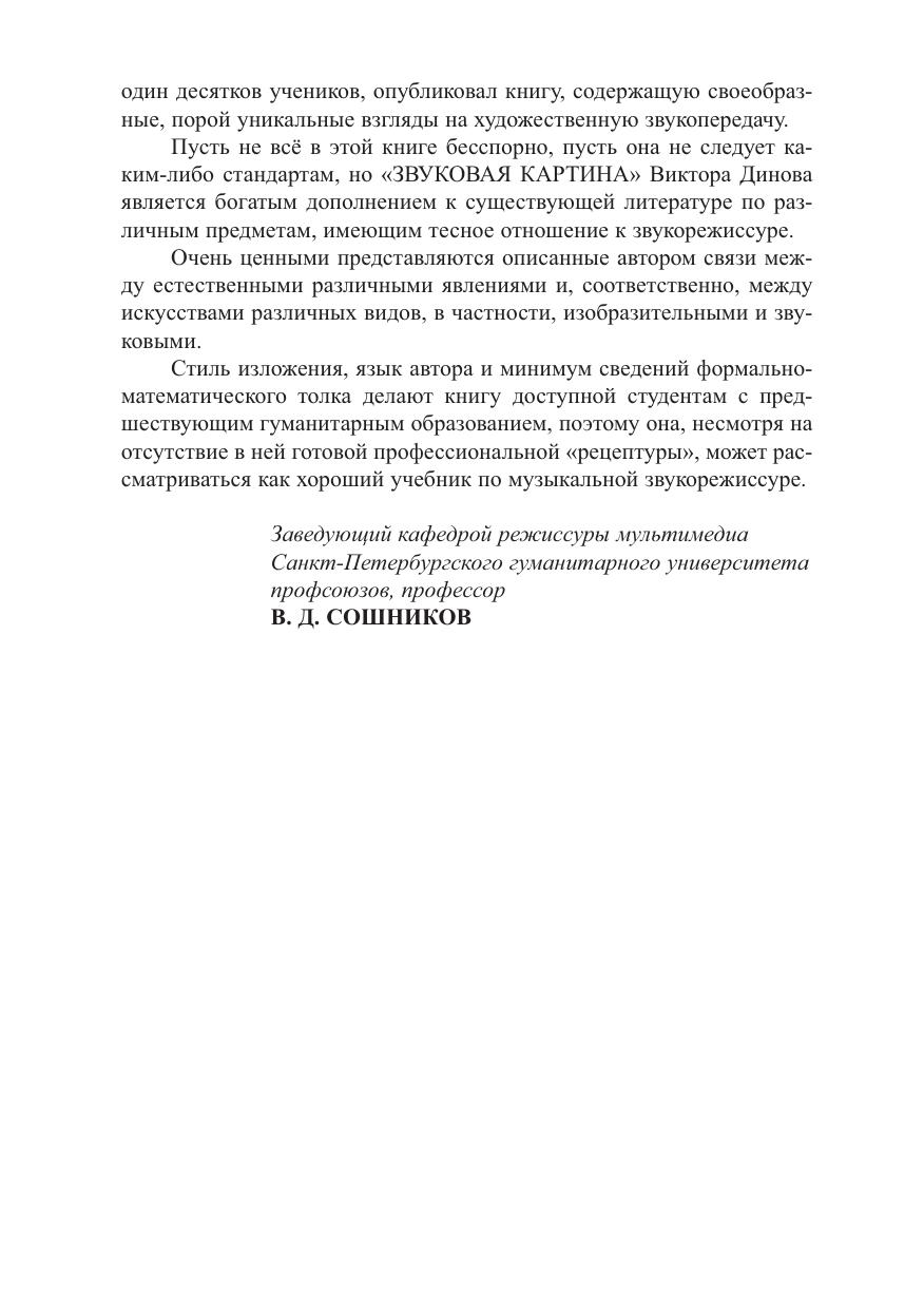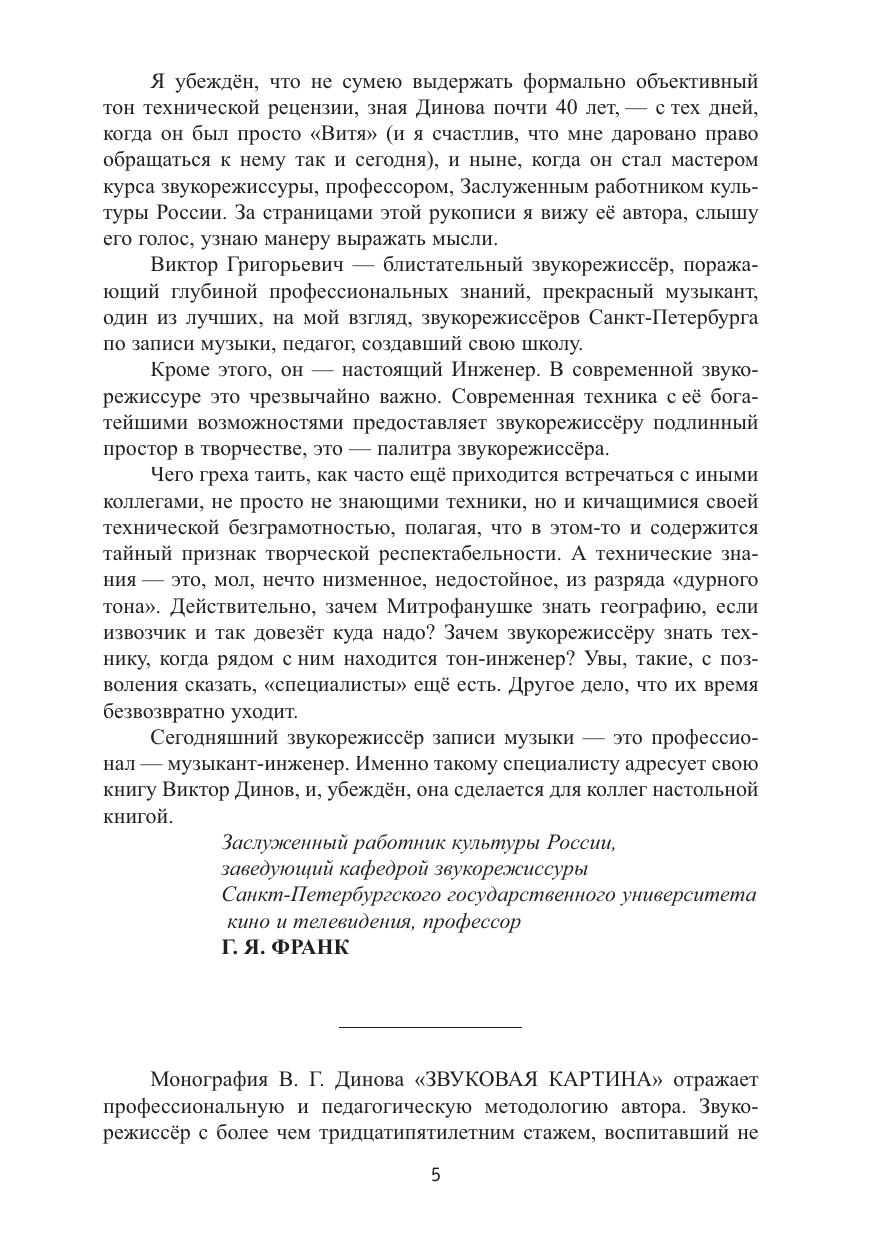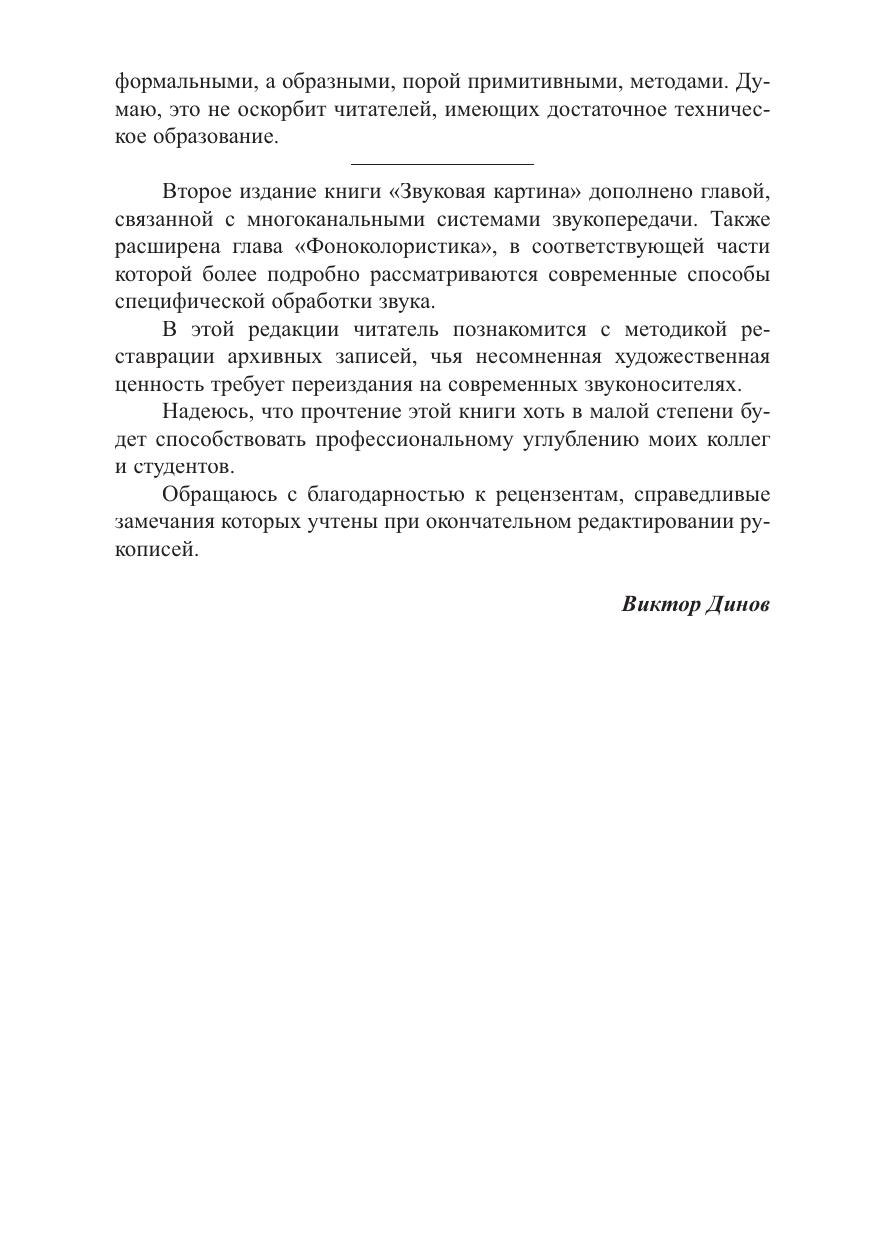 В книге «Звуковая картина» автор рассказывает не только о технике и технологии записи звука, но и о таких важных для звукорежиссера понятиях как композиция, колористика и стилистика фонографий.