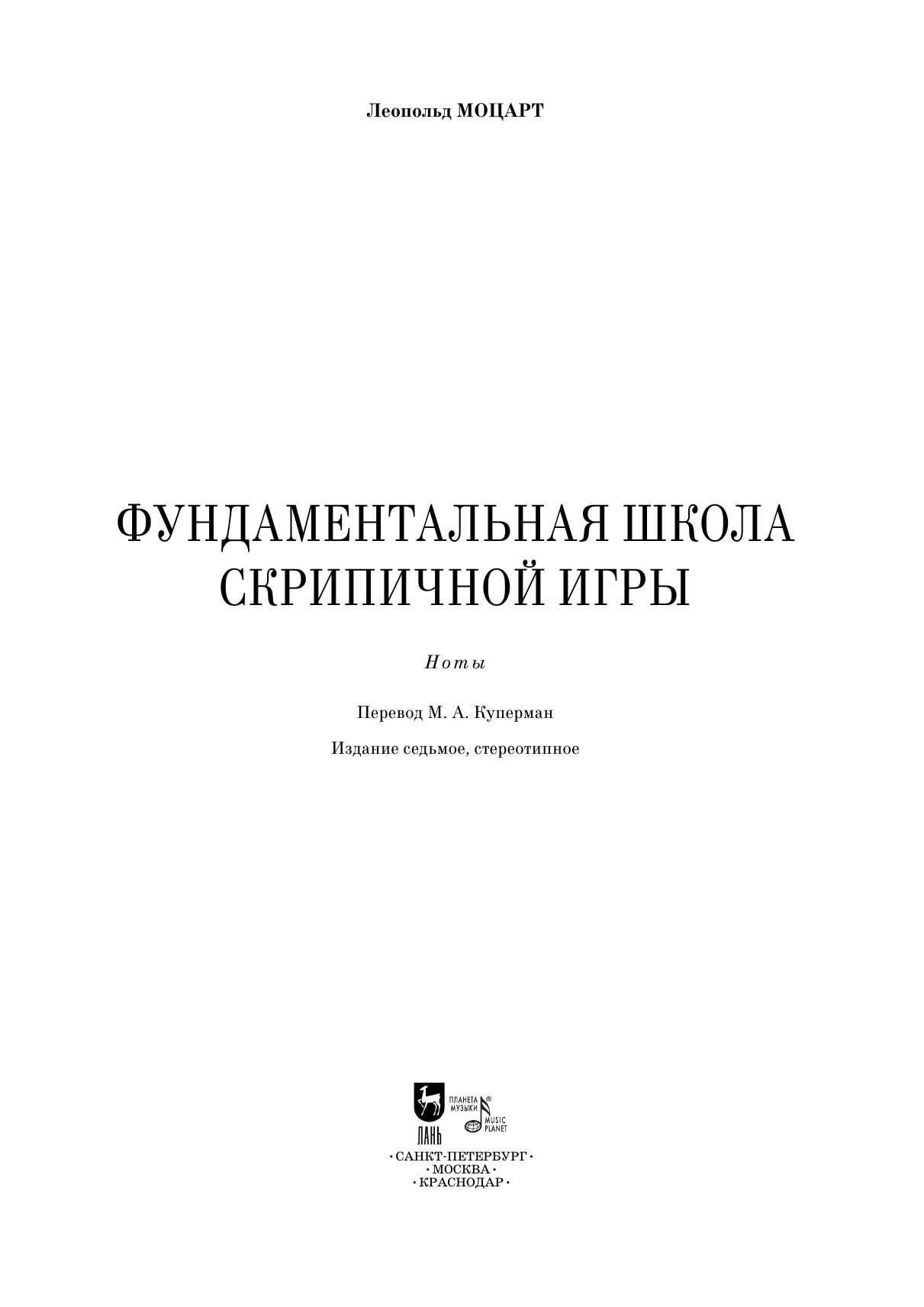 Трактат Леопольда Моцарта, отца Вольфганга Амадея Моцарта, «Фундаментальная школа скрипичной игры» является одним из важнейших трактатов XVIII века, посвященных вопросам исполнительского мастерства. Перевод сделан со второго издания 1769 года и снабжен многочисленными нотными примерами и комментариями.