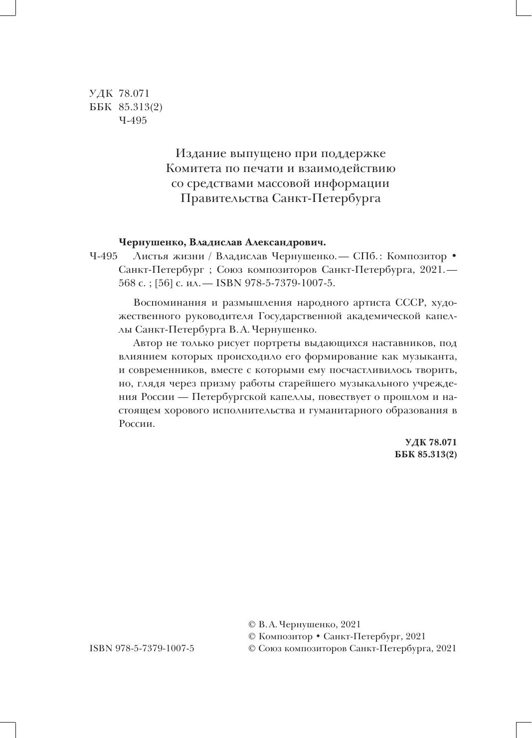 Воспоминания и размышления народного артиста СССР, художественного руководителя Государственной академической капеллы Санкт-Петербурга В. А. Чернушенко.