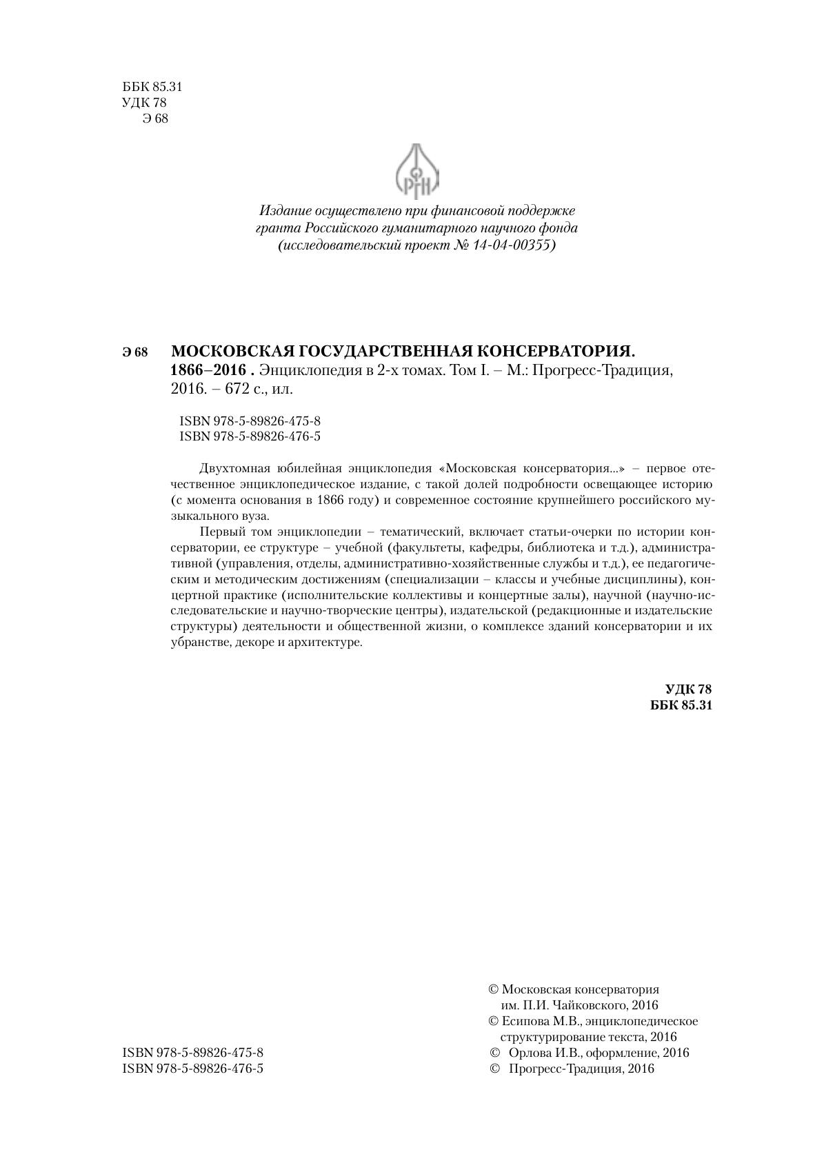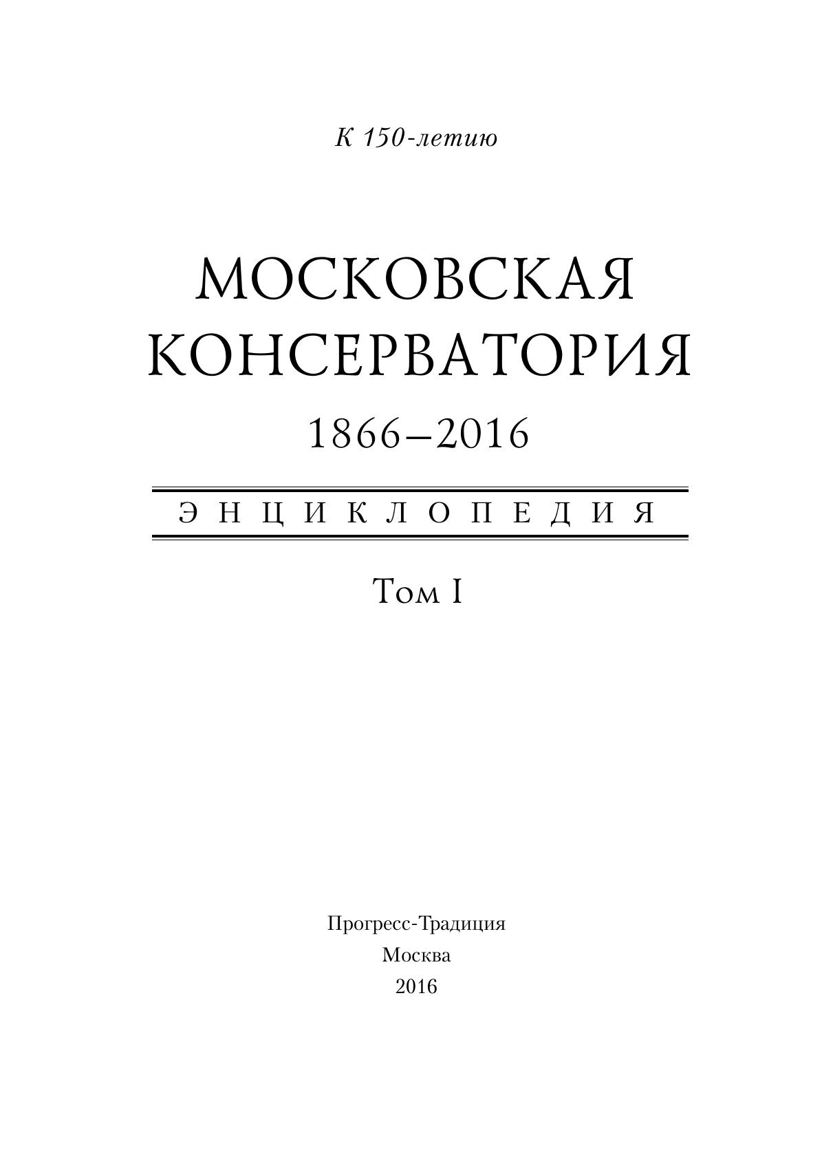 Московская государственная консерватория. 1866–2016. Энциклопедия в 2-х томах. Том I