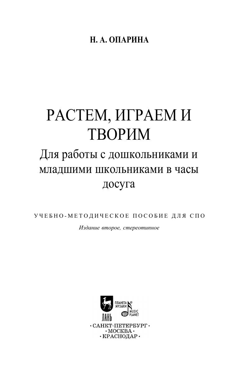 Учебно-методическое пособие состоит из двух разделов. Первый адресован всем, кто общается и играет с малышами, кто вводит детей в мир и помогает в нем жить, расти и развиваться. Автор предлагает использовать шутки, рифмованные загадки, именные приговорочки, стихи, считалочки и песенки, соблюдая правило народной педагогики — «воспитай ребенка в радости». Второй раздел содержит материалы для организации зрелищного досуга младших школьников: игры, театрализованные представления, карнавалы, концерты. Руководитель, используя такие активные игровые приемы, может создать условия сотворчества, при которых будут непринужденно выполняться творческие задачи и развиваться лучшие личностные качества ребят. Соответствует современным требованиям Федерального государственного образовательного стандарта среднего профессионального образования и профессиональным квалификационным требованиям. Пособие адресовано студентам педагогических специальностей средних учебных заведений. The methodical textbook consists of two parts. The first is addressed to anyone who communicates and plays with kids, who introduces children into the world and helps them to live, grow and develop in it. The author proposes to use jokes, rhymed riddles, nominal sentences, poems, counting rhymes and songs, following the rule of folk pedagogy, that is “to raise a child in joy”. The second part contains stuff for organizing entertainment activities for junior schoolchildren: games, theatrical performances, carnivals, concerts. The leader, using such active game techniques, can create conditions for co-creation, under which creative tasks will be easily performed and the children’s best personal qualities will develop. Corresponds to the modern requirements of the Federal State Educational Standard of Secondary Vocational Education and professional qualification requirements. The textbook is addressed to students of pedagogical specialities of colleges.
