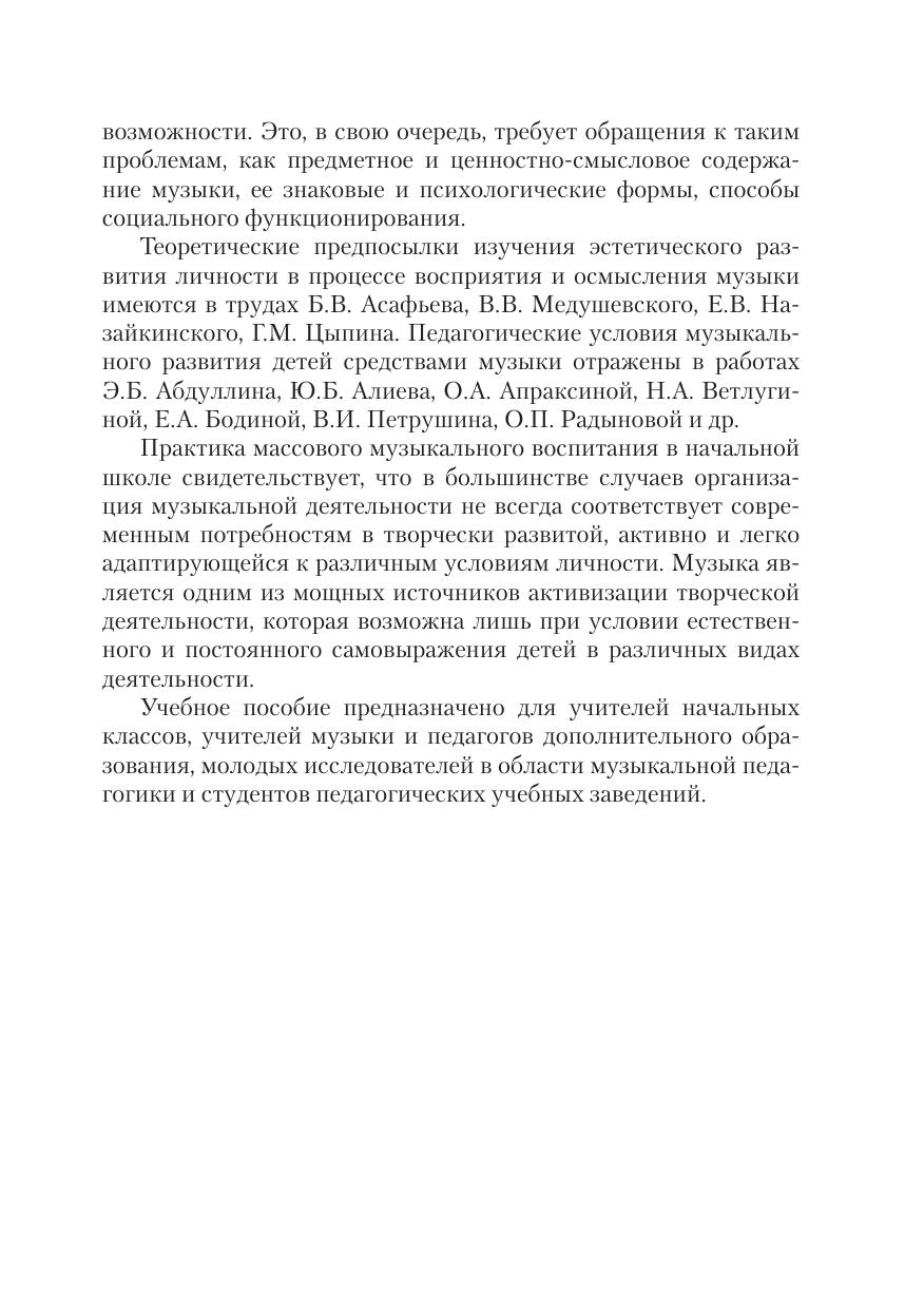 Для музыкантов-педагогов, бакалавров, магистров, аспирантов, студентов, учителей начальных классов и учителей музыки, педагогов дополнительного образования, а также для широкого круга читателей, интересующихся проблемами музыкального образования.