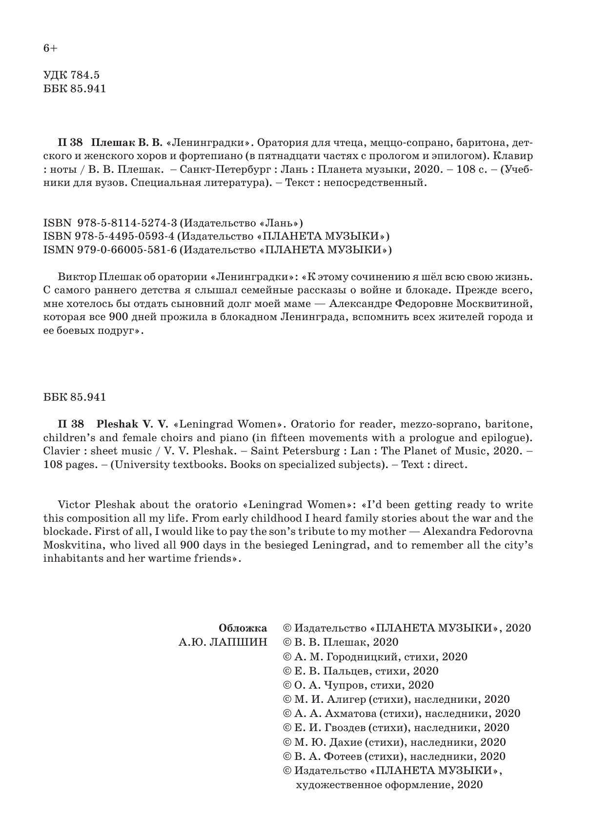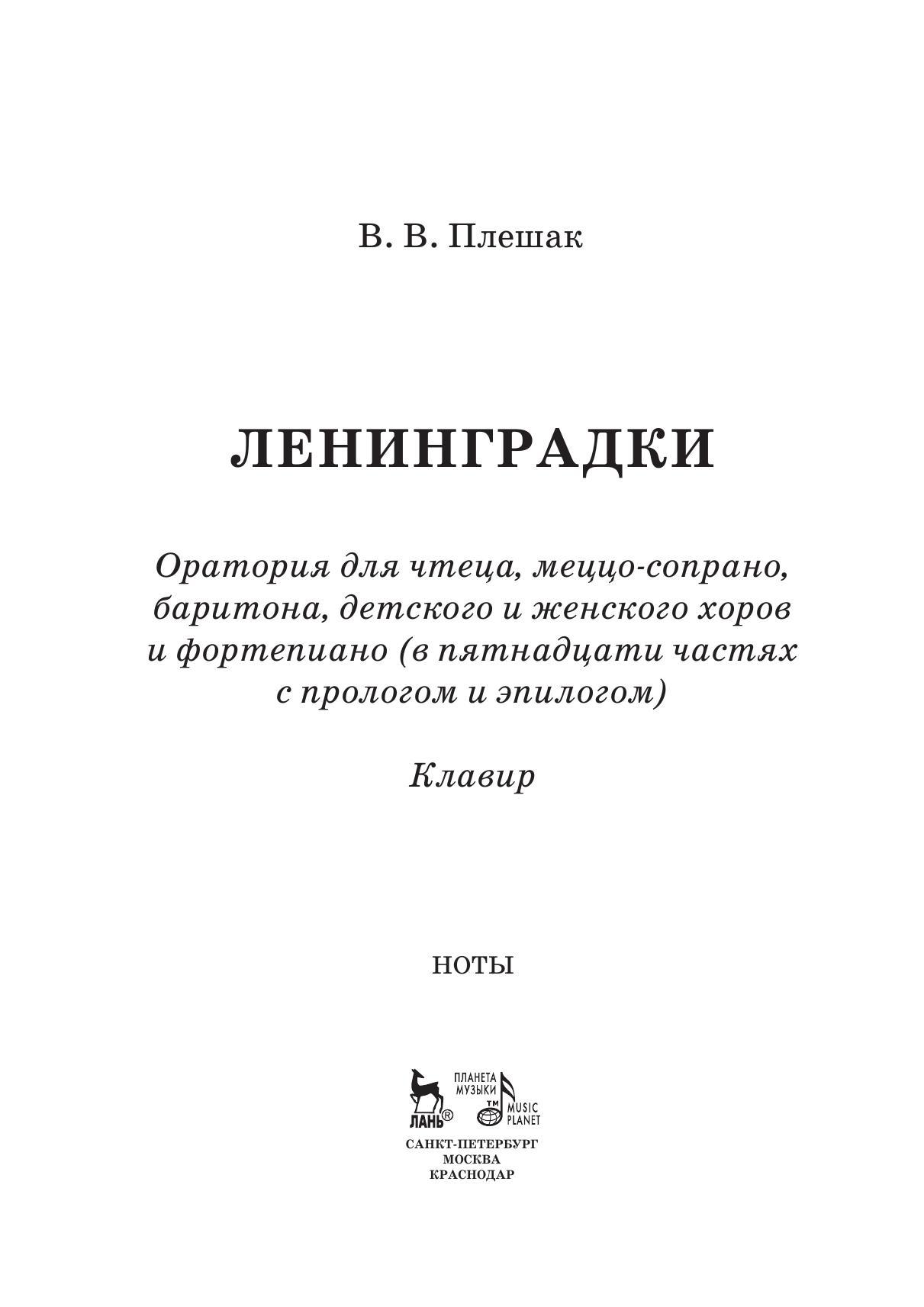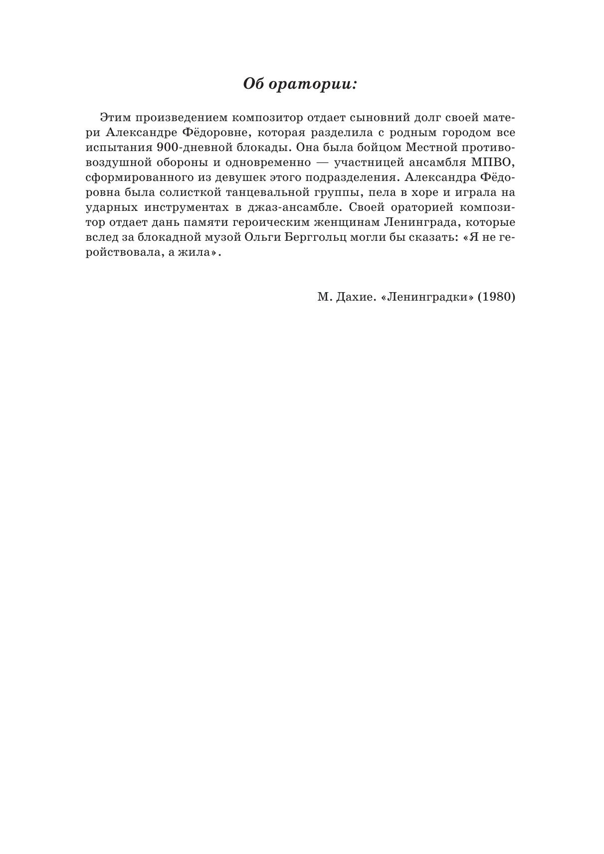 «Ленинградки». Оратория для чтеца, меццо‐сопрано, баритона, детского и женского хоров и фортепиано (в пятнадцати частях с прологом и эпилогом). Клавир