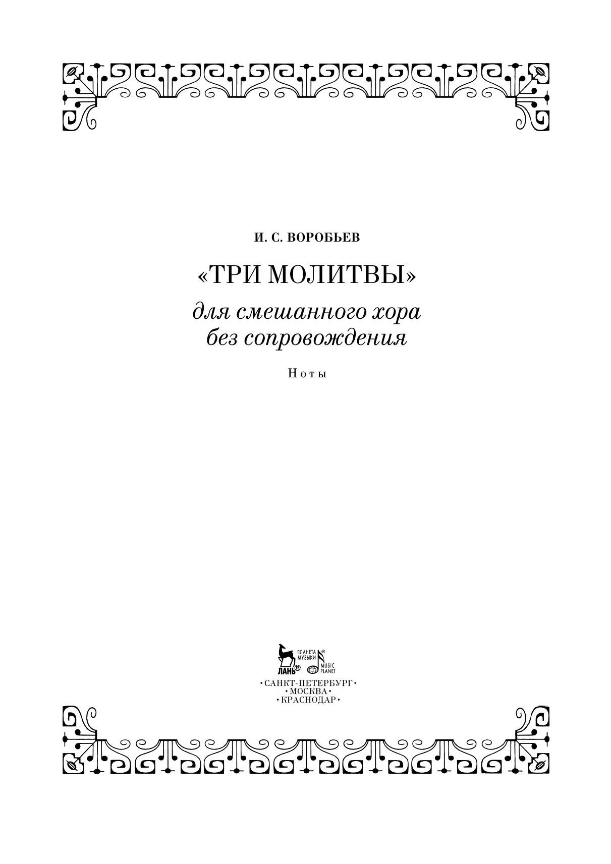 В сборник петербургского композитора Игоря Воробьева вошли три хора на канонические тексты: «Молитву пролию», «Владыко человеколюбче» и «Чертог твой вижду». Знакомые многим тексты молитв в видении автора получают новое свежее прочтение. Многоголосная хоровая ткань насыщена нетрадиционными яркими гармоническими красками.