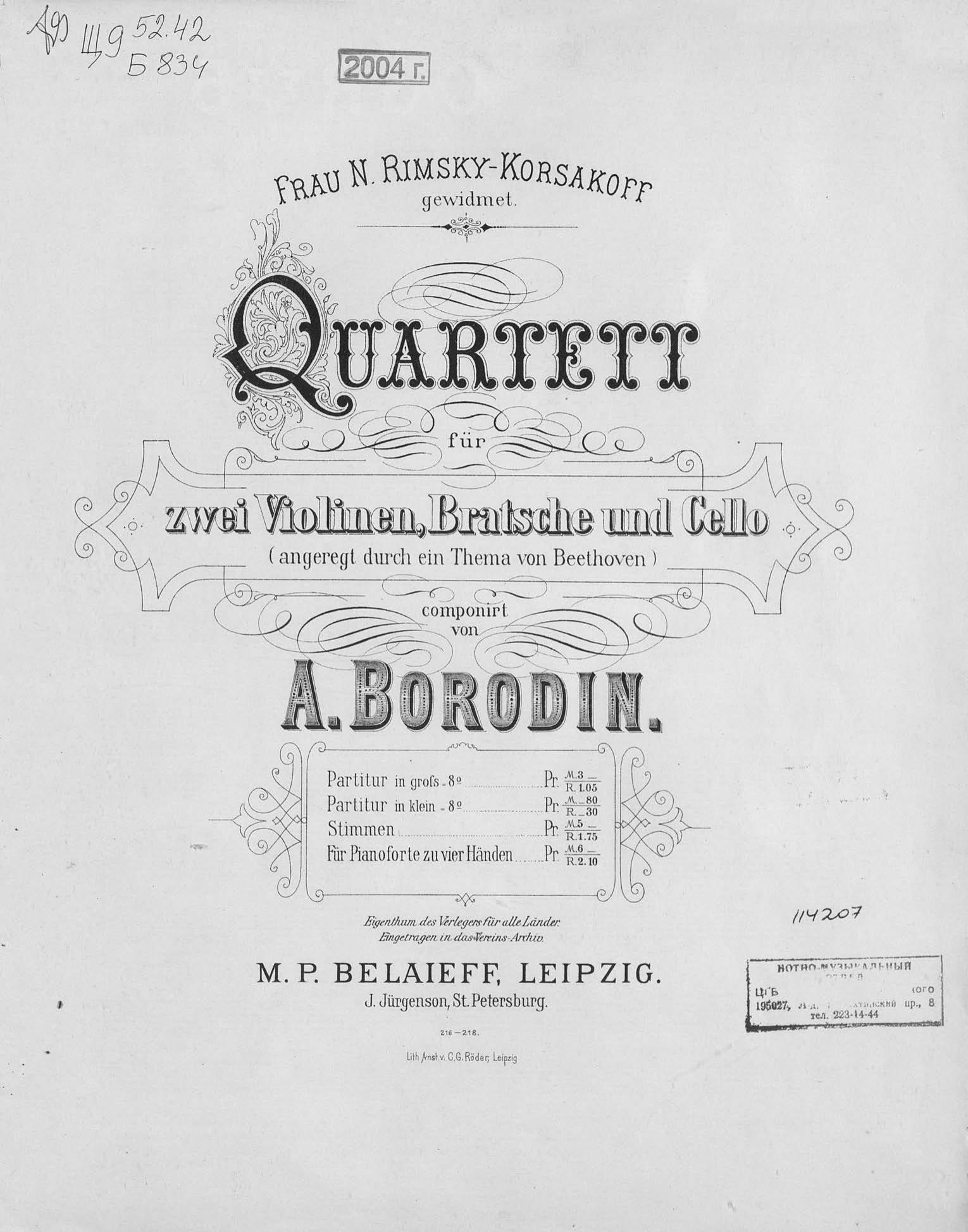 1-й квартет для 2 скрипок, альта и виолончели