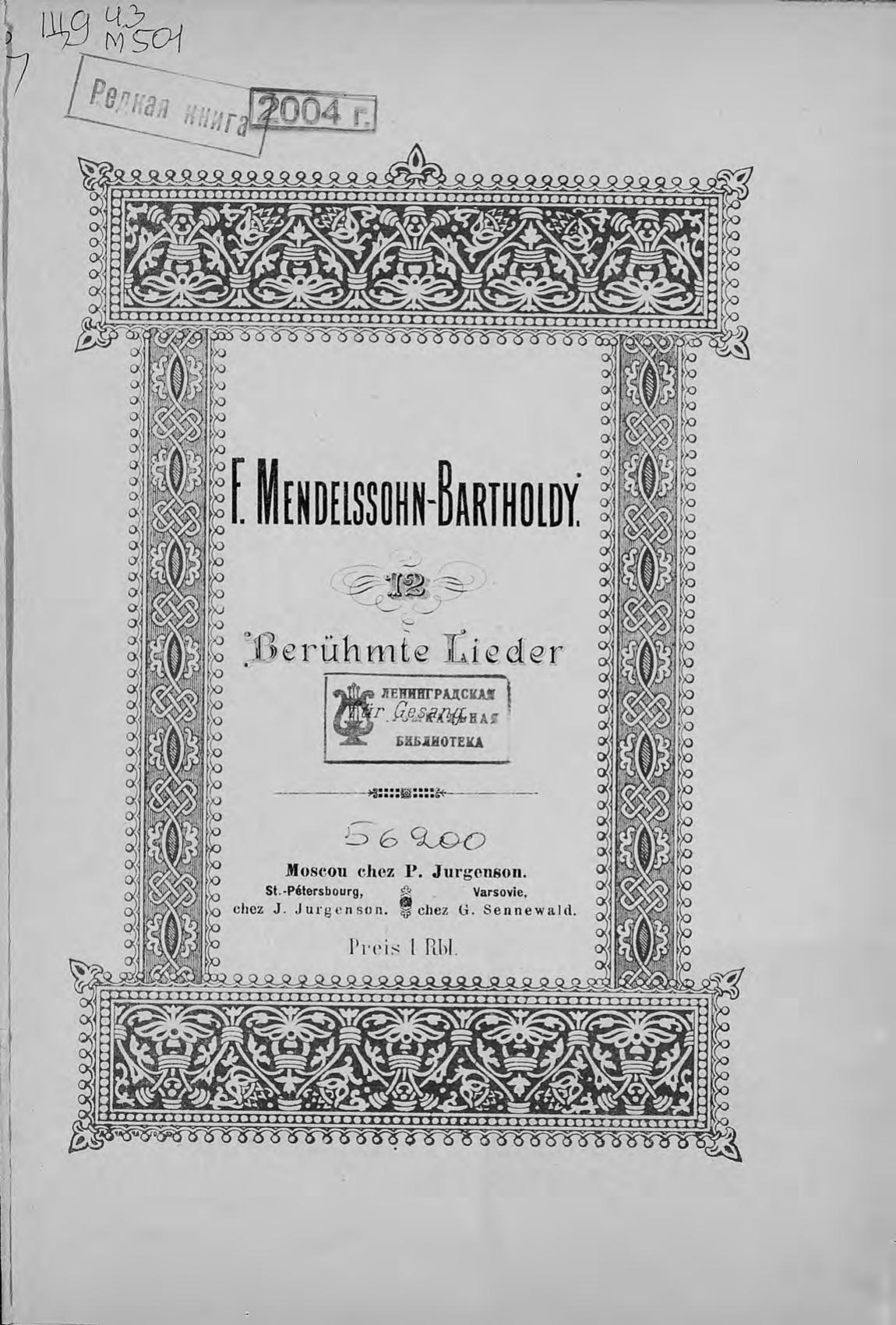 Перешедшие в общественное достояние материалы электронного фонда ЦГПБ им. В.В. Маяковского. Сведения о издательстве или типографии: П. Юргенсон. Место издания: Москва