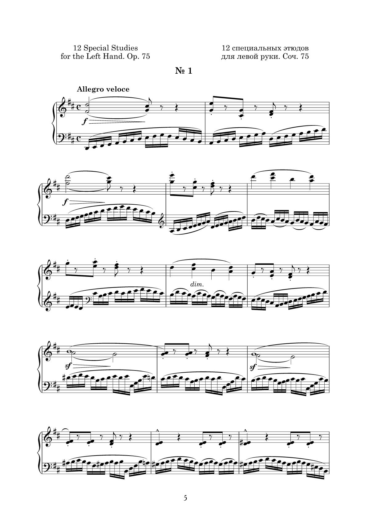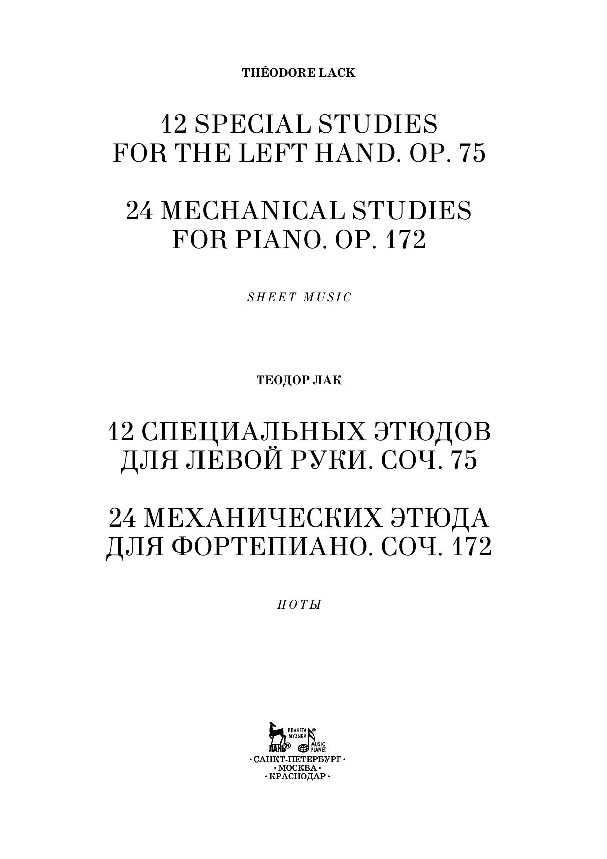 12 специальных этюдов для левой руки, Соч. 75. 24 механических этюда для фортепиано. Соч. 172