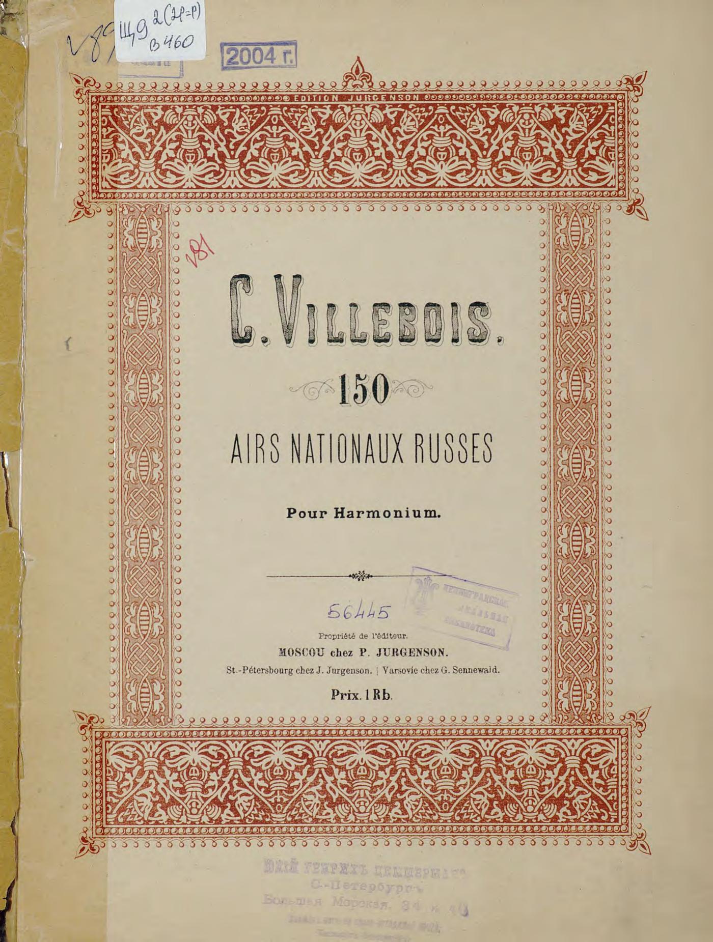 Перешедшие в общественное достояние материалы электронного фонда ЦГПБ им. В.В. Маяковского. Сведения о издательстве или типографии: П. Юргенсон. Место издания: Москва