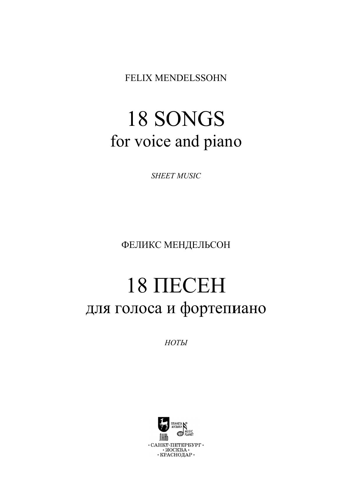 18 песен. Для голоса и фортепиано