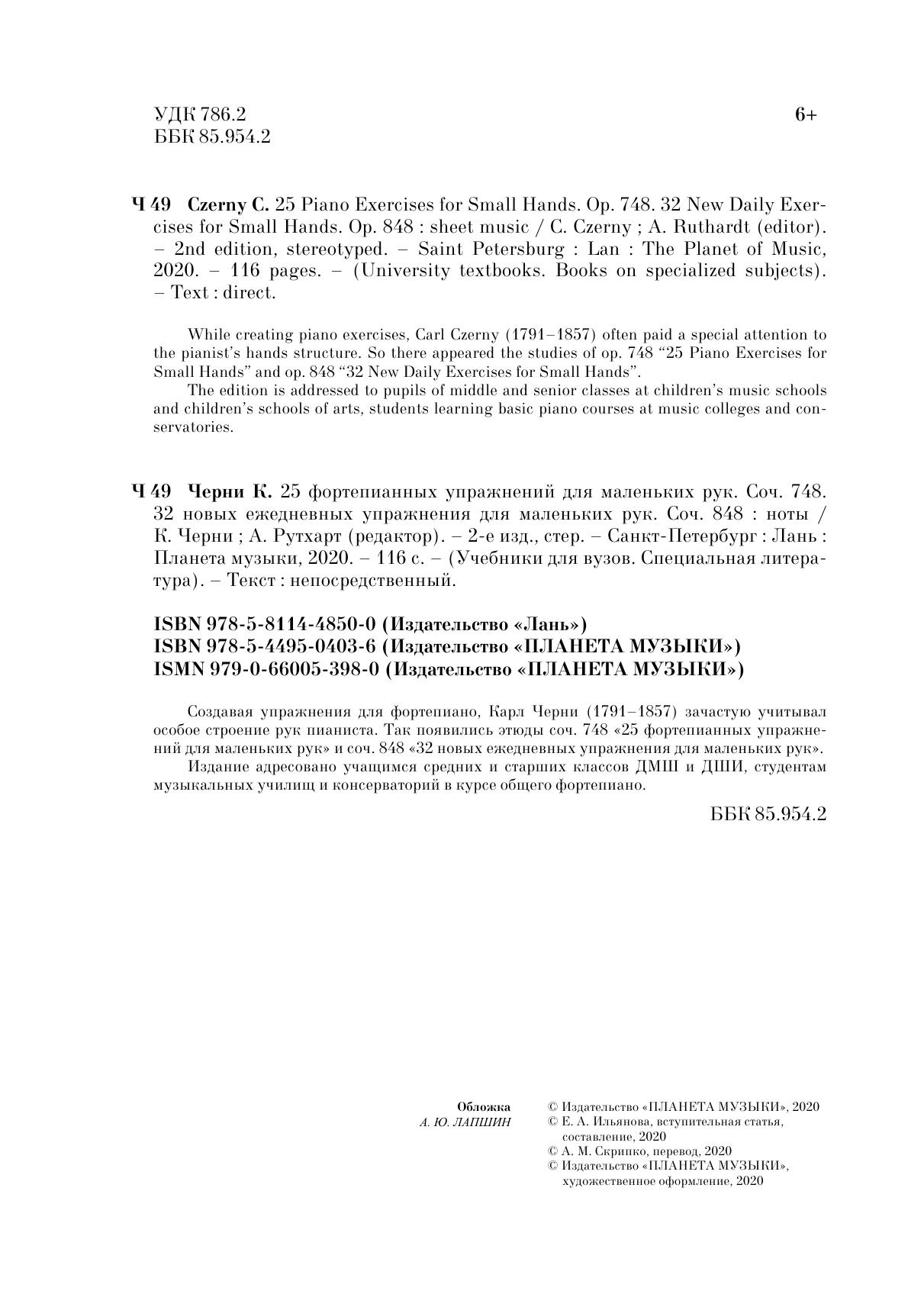 25 фортепианных упражнений для маленьких рук, соч. 748. 32 новых ежедневных упражнения для маленьких рук, соч. 848