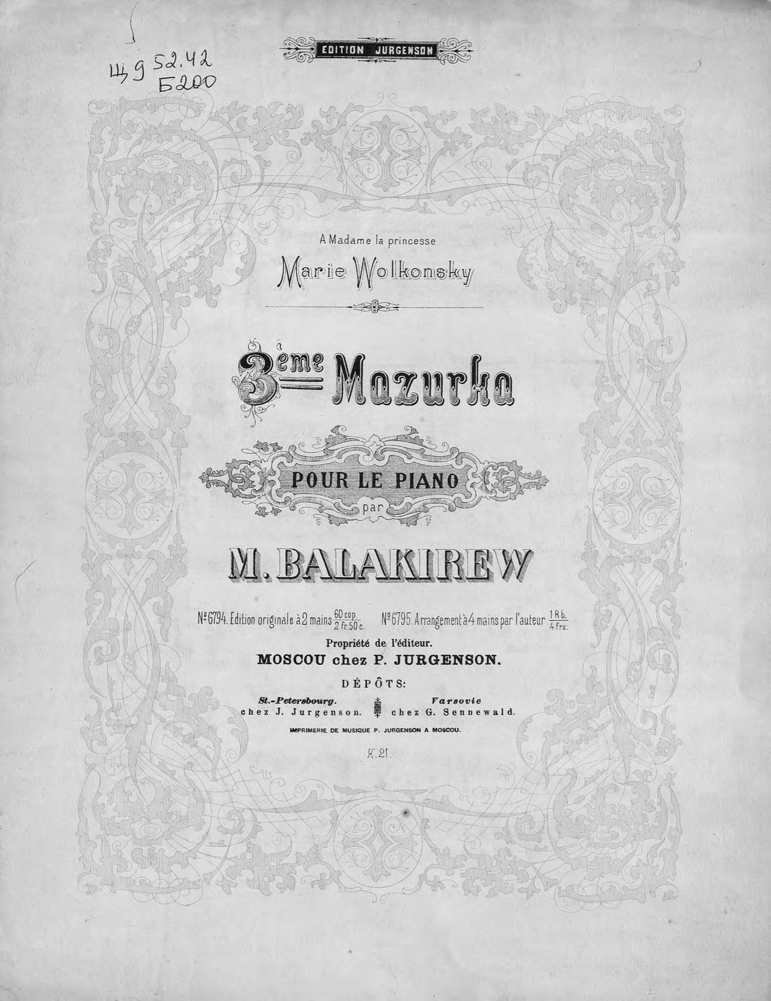 Перешедшие в общественное достояние материалы электронного фонда ЦГПБ им. В.В. Маяковского. Сведения о издательстве или типографии: P. Jurgenson. Место издания: Москва