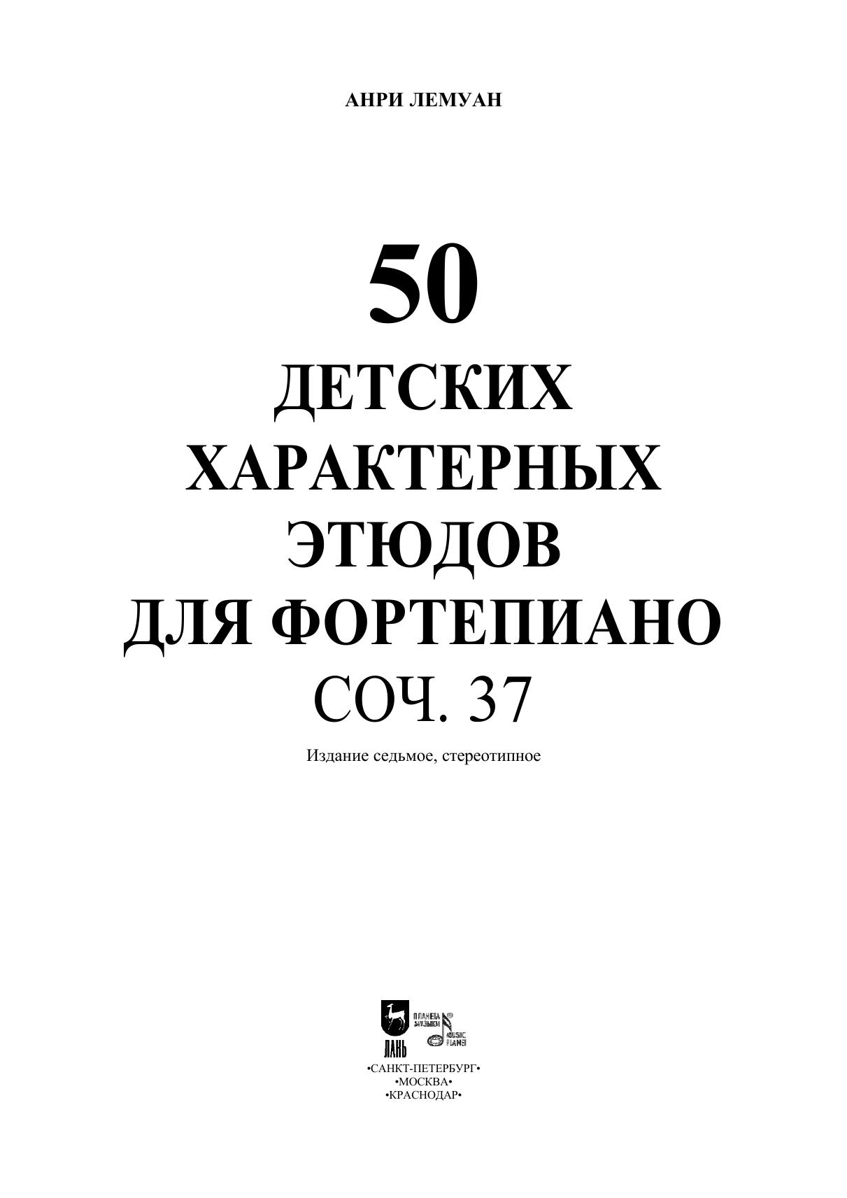 50 детских характерных этюдов для фортепиано. Соч. 37