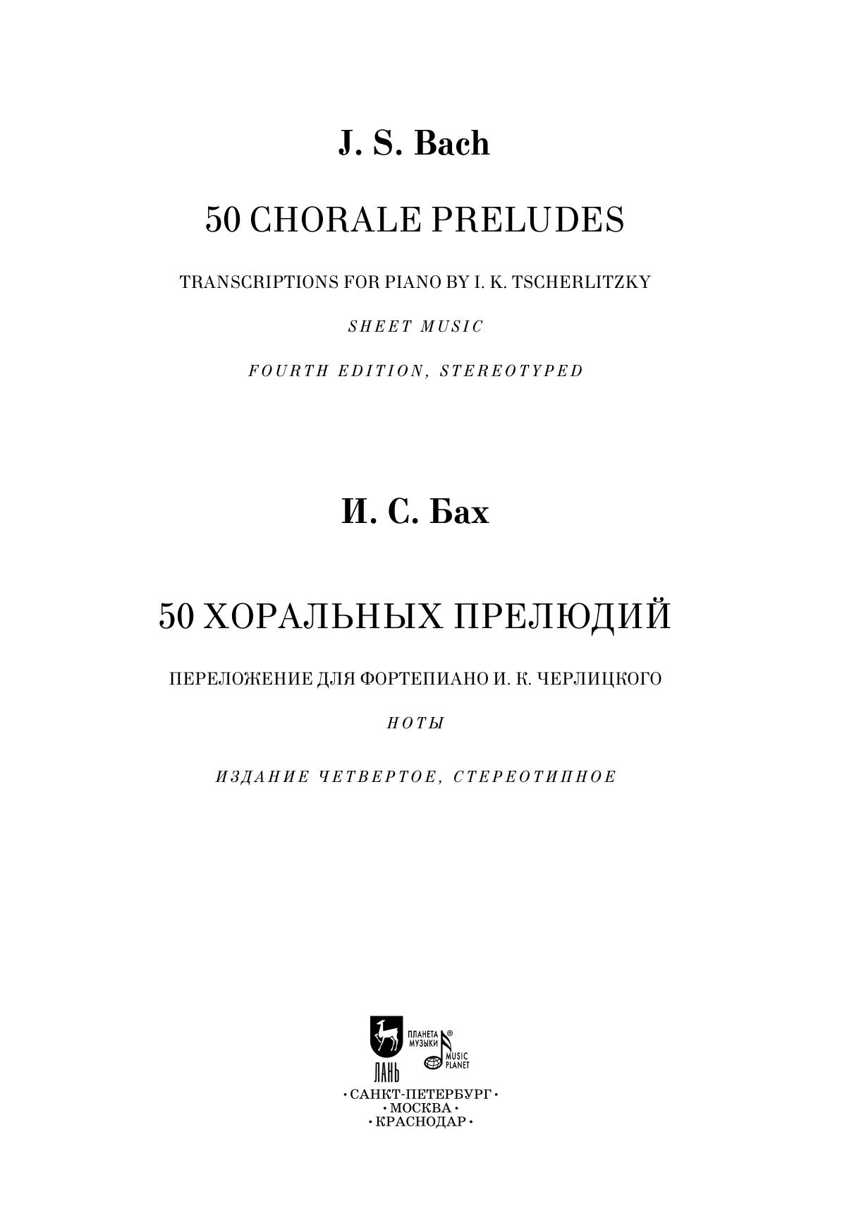 В настоящем сборнике публикуются 50 хоральных прелюдий в переложении для фортепиано Черлицкого.