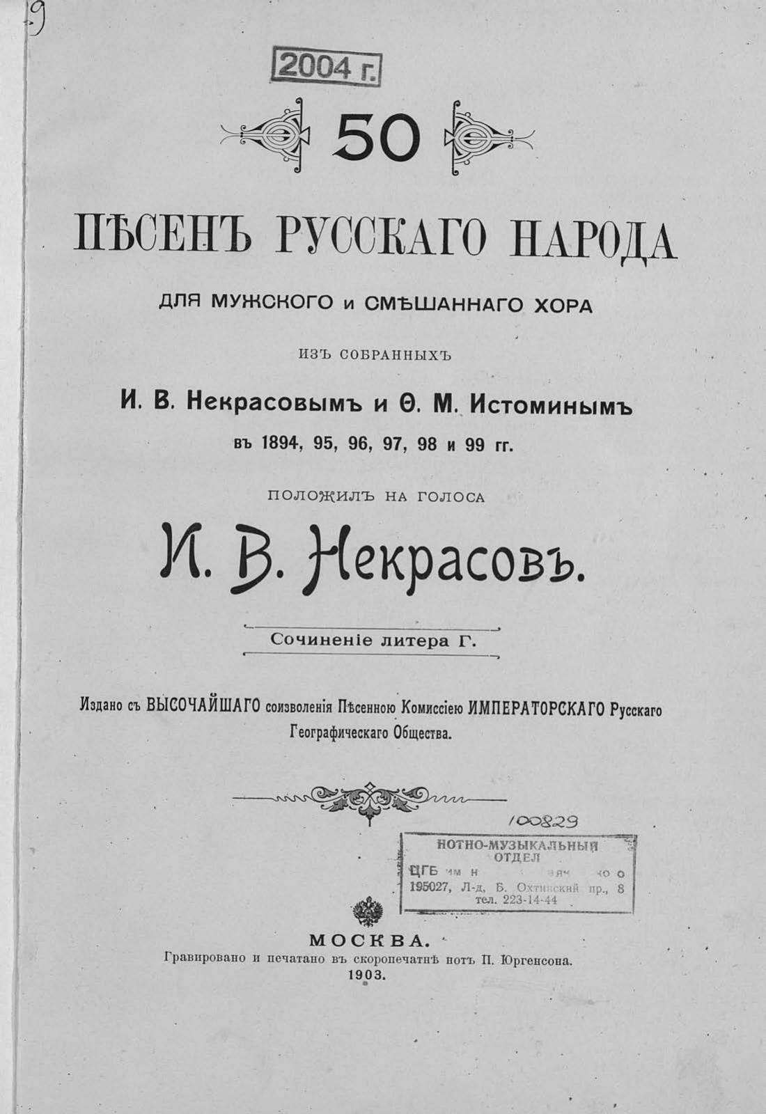 Перешедшие в общественное достояние материалы электронного фонда ЦГПБ им. В.В. Маяковского. Сведения о издательстве или типографии: П. Юргенсон. Место издания: Москва