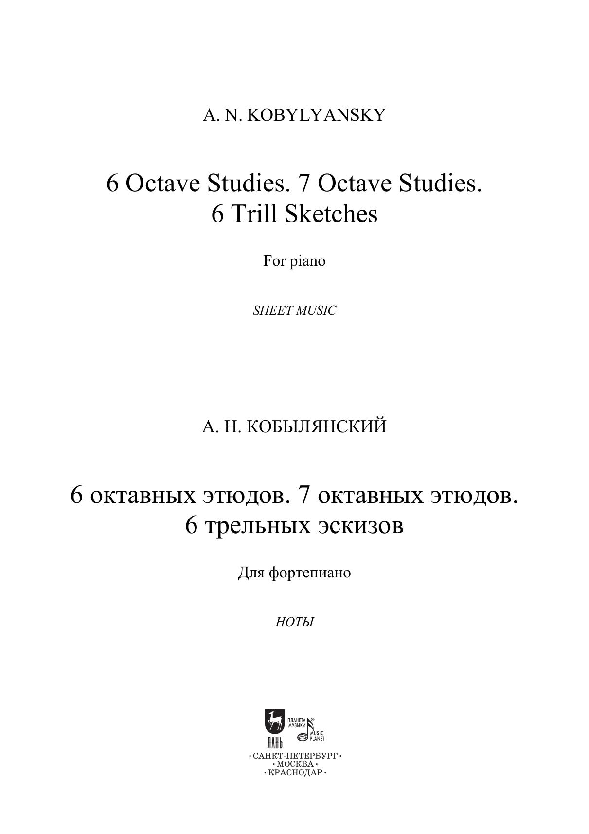 6 октавных этюдов. 7 октавных этюдов. 6 трельных эскизов. Для фортепиано