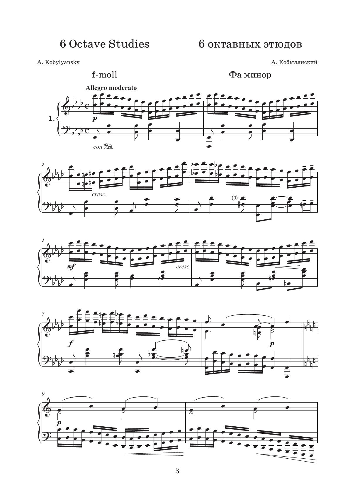 Александр Николаевич Кобылянский (1881–1942) — пианист, композитор, педагог, профессор и заведующий кафедрой специального фортепиано Ленинградской государственной консерватории им. Н. А. Римского-Корсакова. Представленные в данном сборнике этюды входят в педагогический и конкурсный репертуар. Издание адресовано учащимся и преподавателям музыкальных учебных заведений, а также широкому кругу увлекающихся фортепианным искусством. Alexander Nikolayevich Kobylyansky (1881–1942) was a pianist, composer, teacher, professor and the head of the special piano department at the N. A. Rimsky-Korsakov Leningrad State Conservatory. The studies presented in this collection have become a part of the pedagogical and contests repertoire. The edition is addressed to students and teachers of music schools, as well as a wide range of piano art lovers.