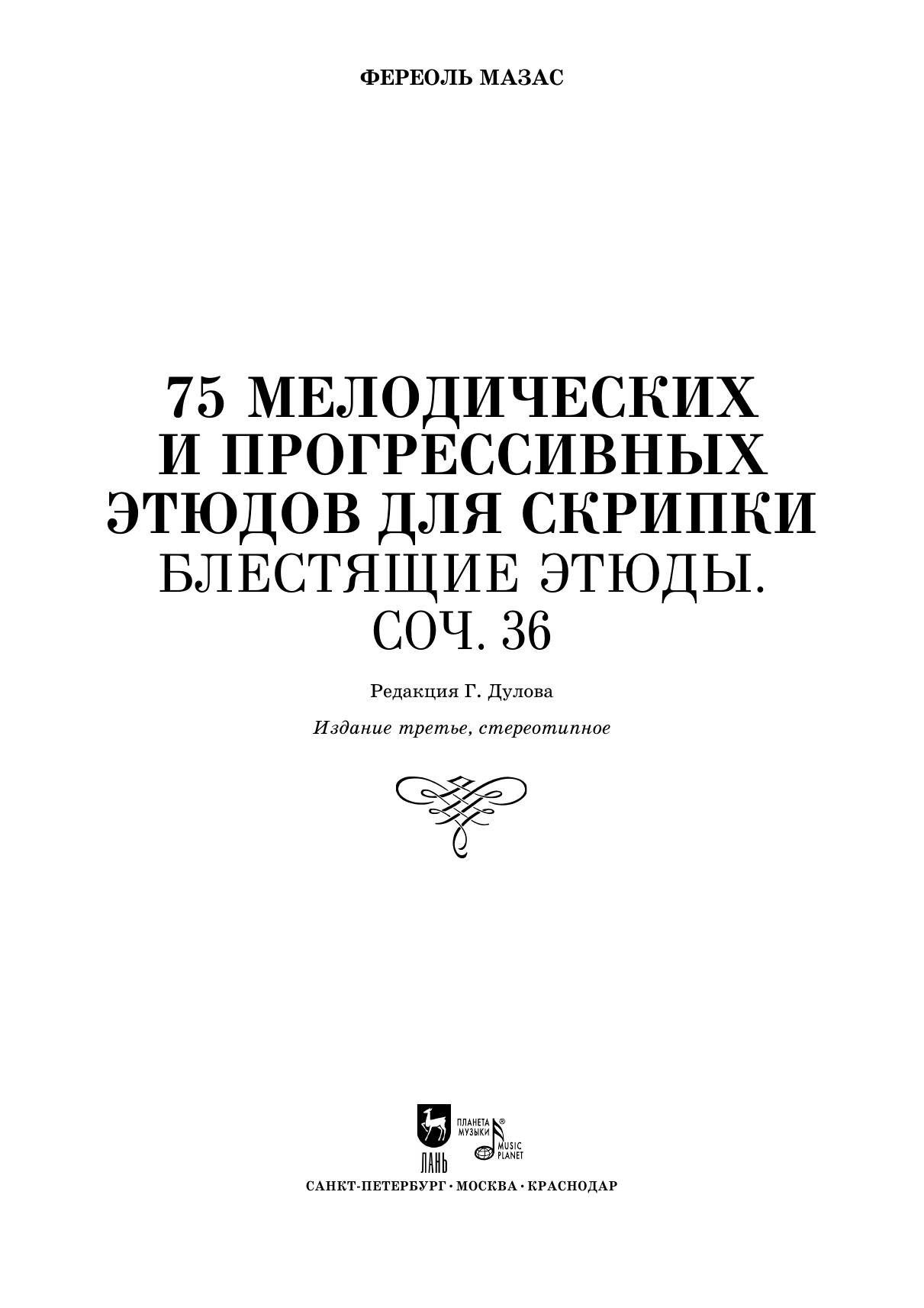 75 мелодических и прогрессивных этюдов для скрипки. Блестящие этюды. Соч. 36
