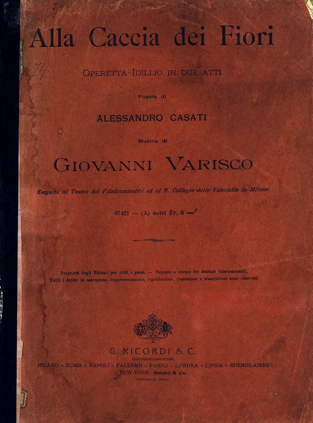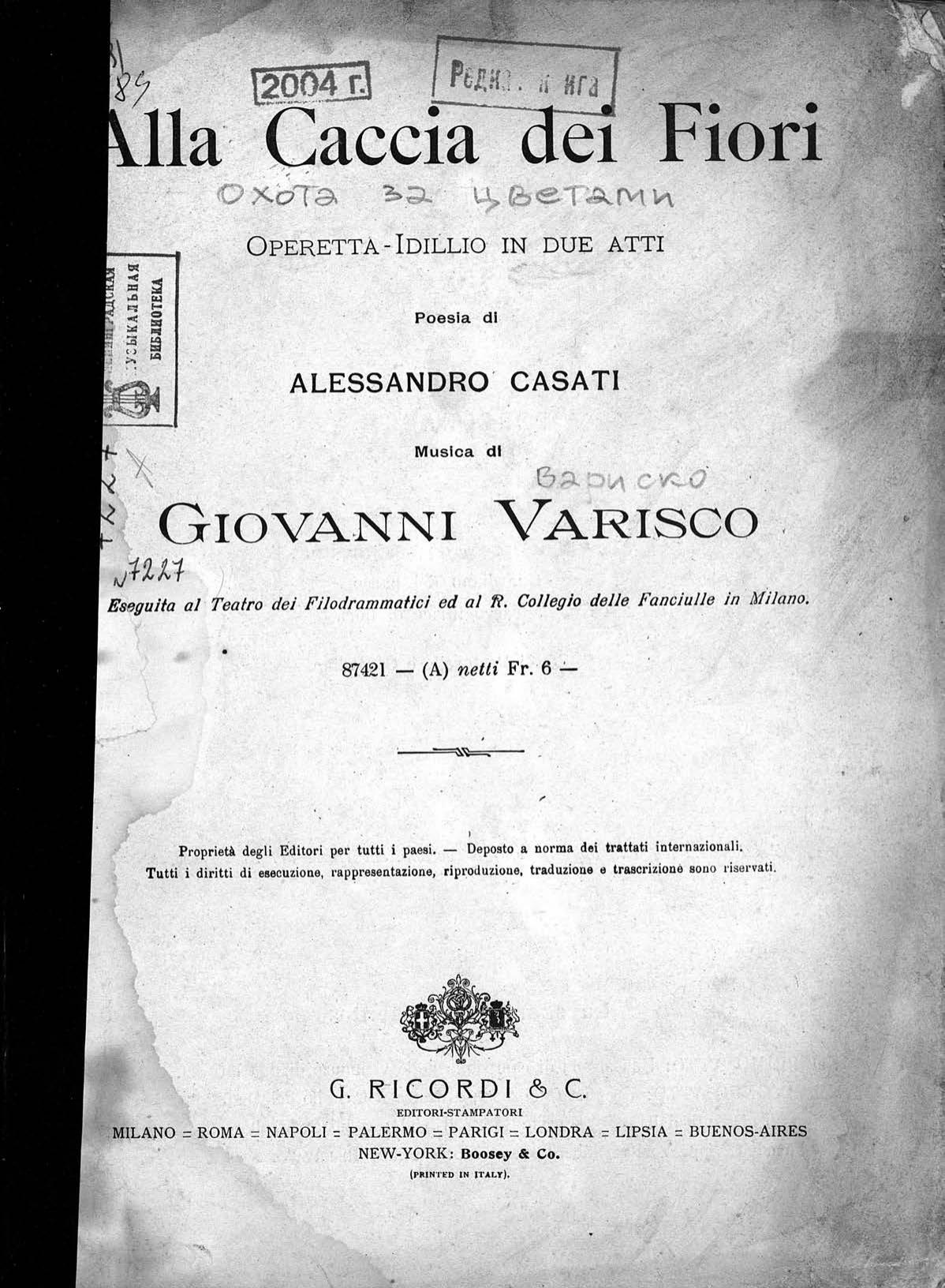 Перешедшие в общественное достояние материалы электронного фонда ЦГПБ им. В.В. Маяковского. Сведения о издательстве или типографии: G. Ricordi & C. Место издания: Милан