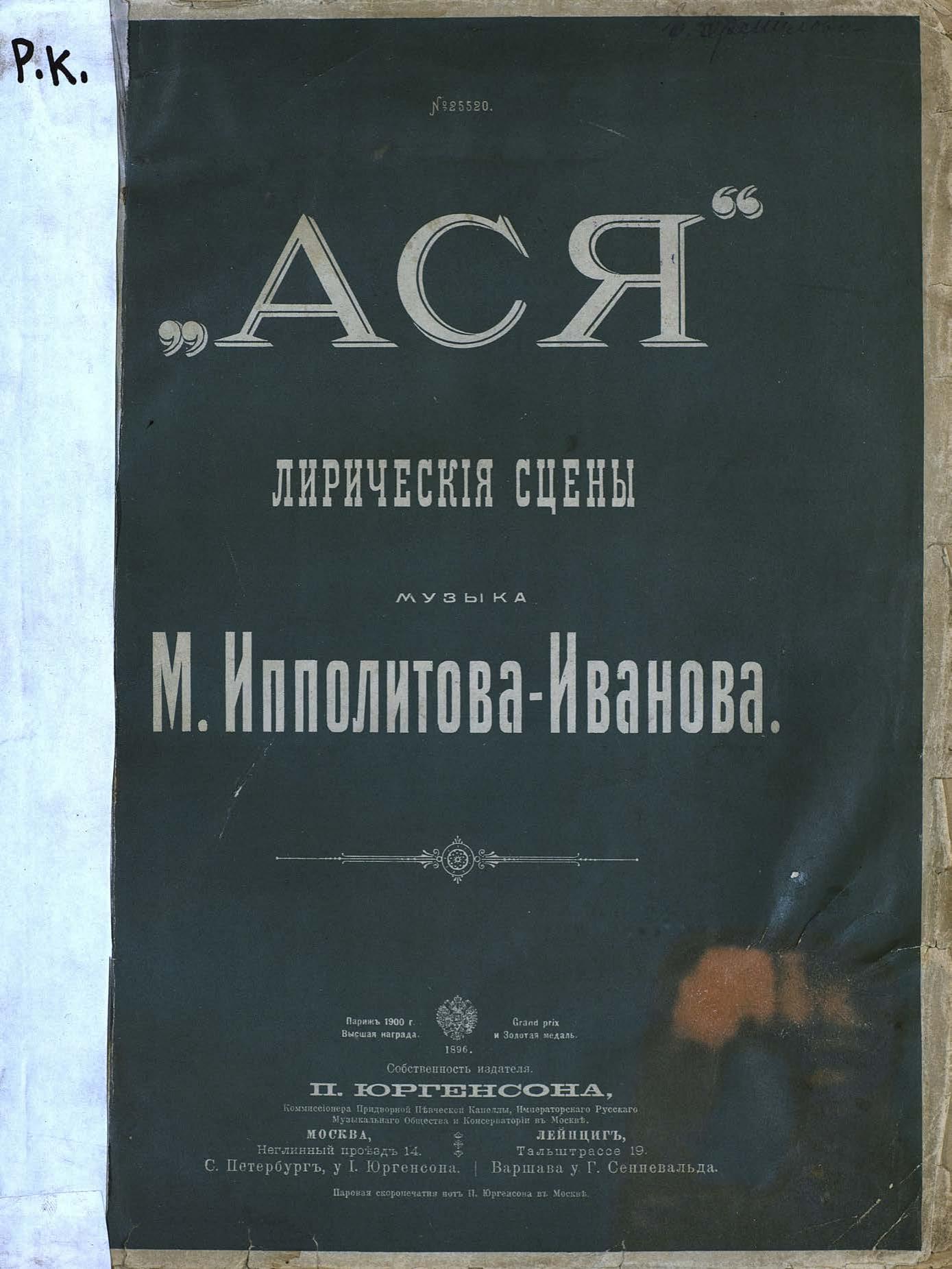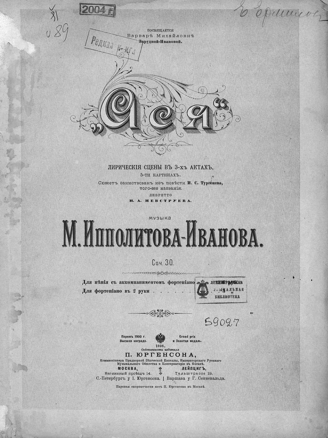 Перешедшие в общественное достояние материалы электронного фонда ЦГПБ им. В.В. Маяковского. Сведения о издательстве или типографии: П. Юргенсон. Место издания: Москва