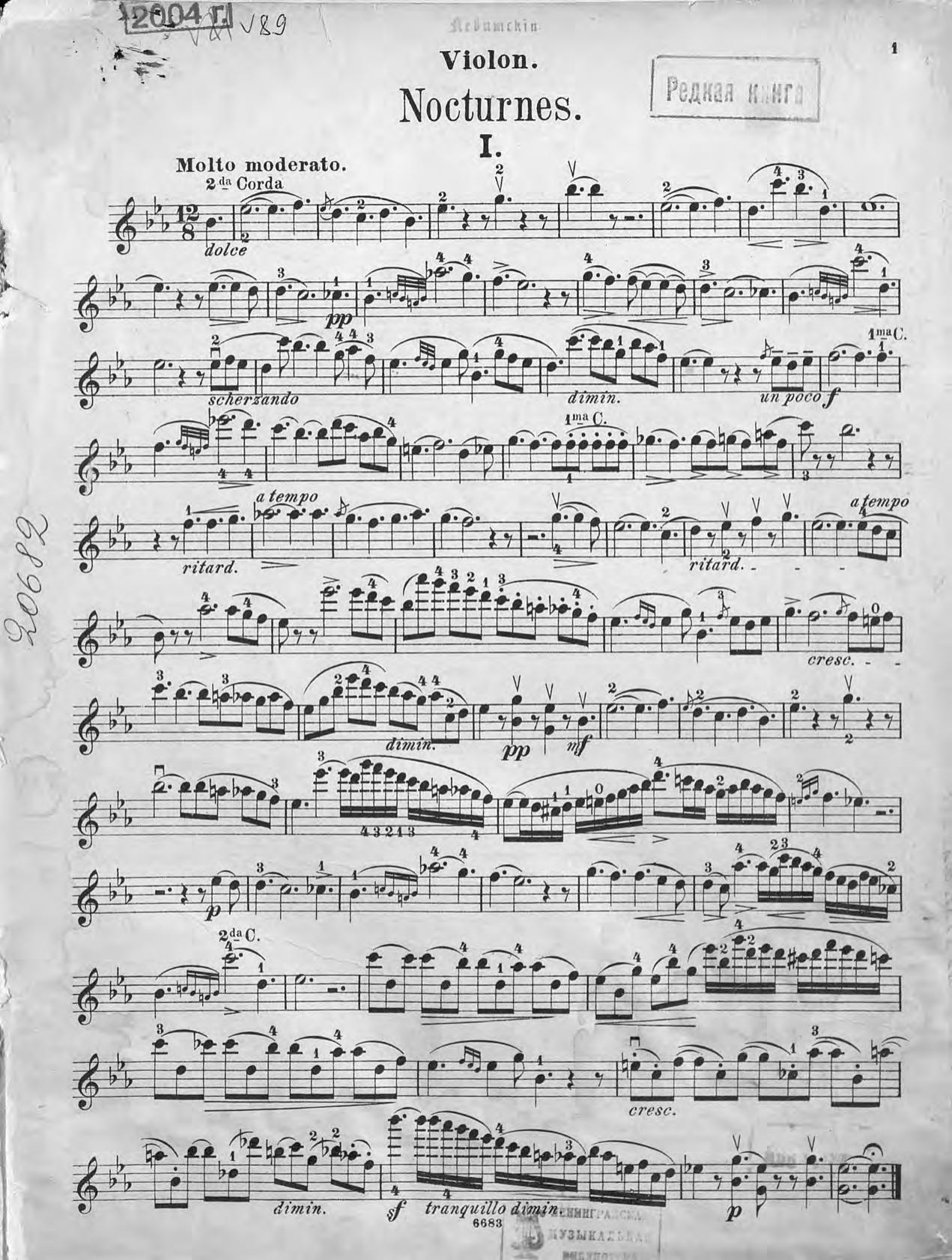 Ausgewahlte Nocturnes v. John Field fur Violine mit Pianofortebegleitung ubertragen v. Fr. Hermann