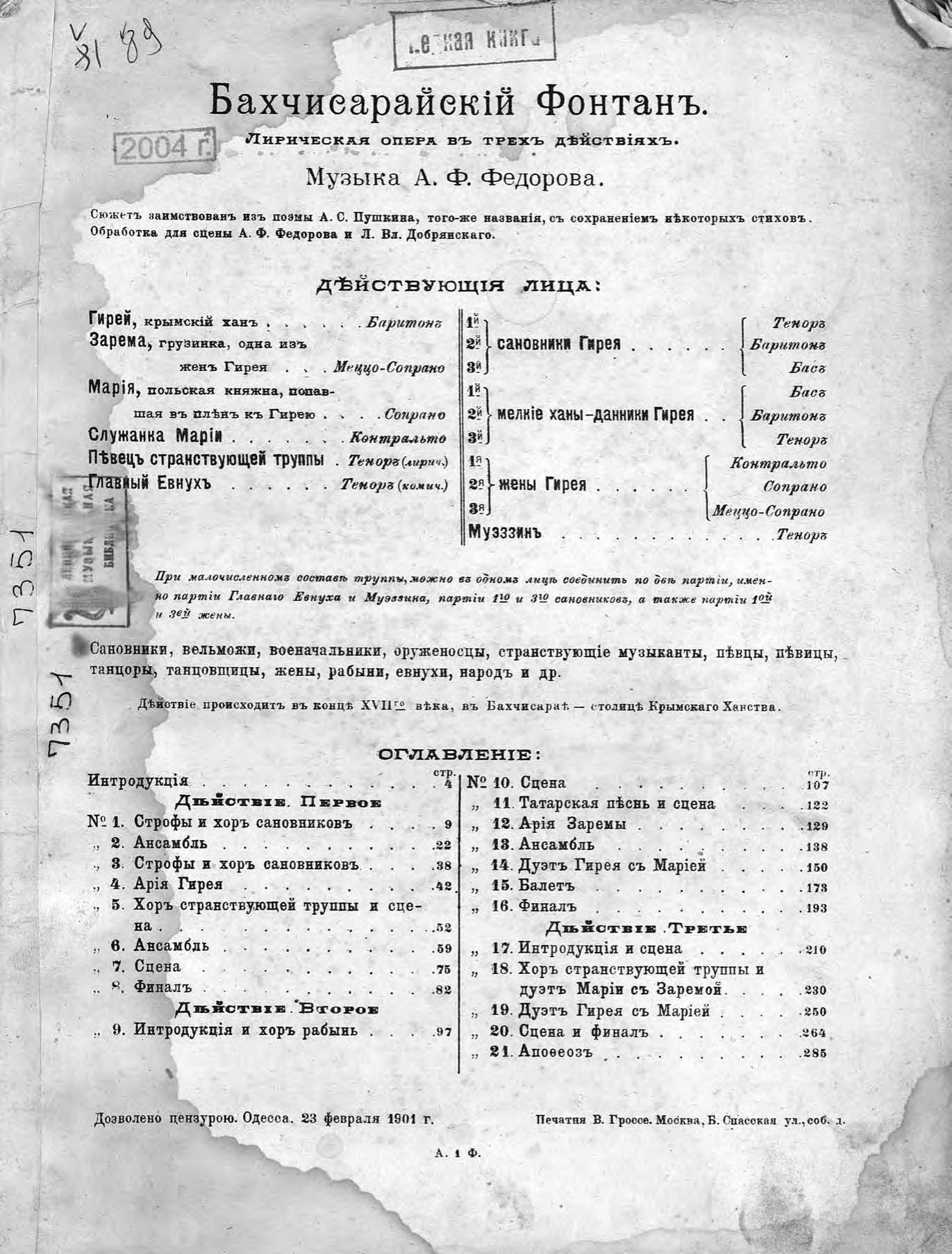Перешедшие в общественное достояние материалы электронного фонда ЦГПБ им. В.В. Маяковского. Сведения о издательстве или типографии: изд. П. Юргенсона. Место издания: Москва