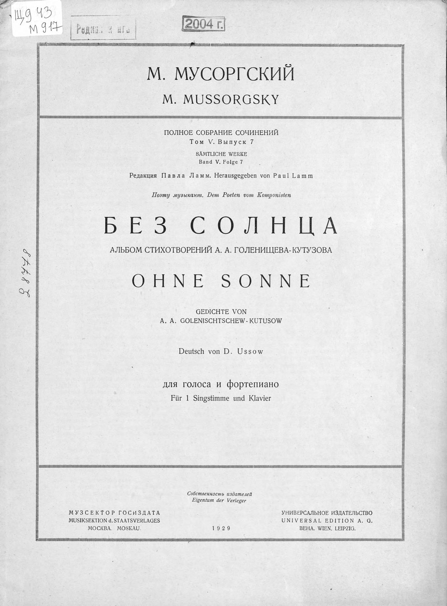 Перешедшие в общественное достояние материалы электронного фонда ЦГПБ им. В.В. Маяковского. Сведения о издательстве или типографии: Госиздат, Музсектор. Место издания: Москва