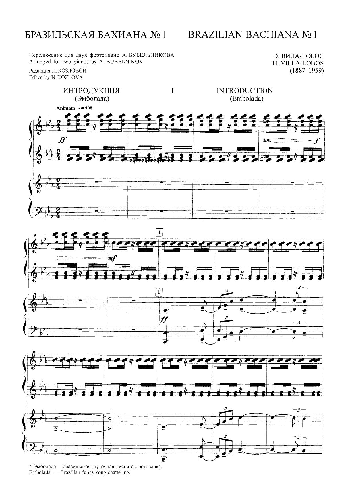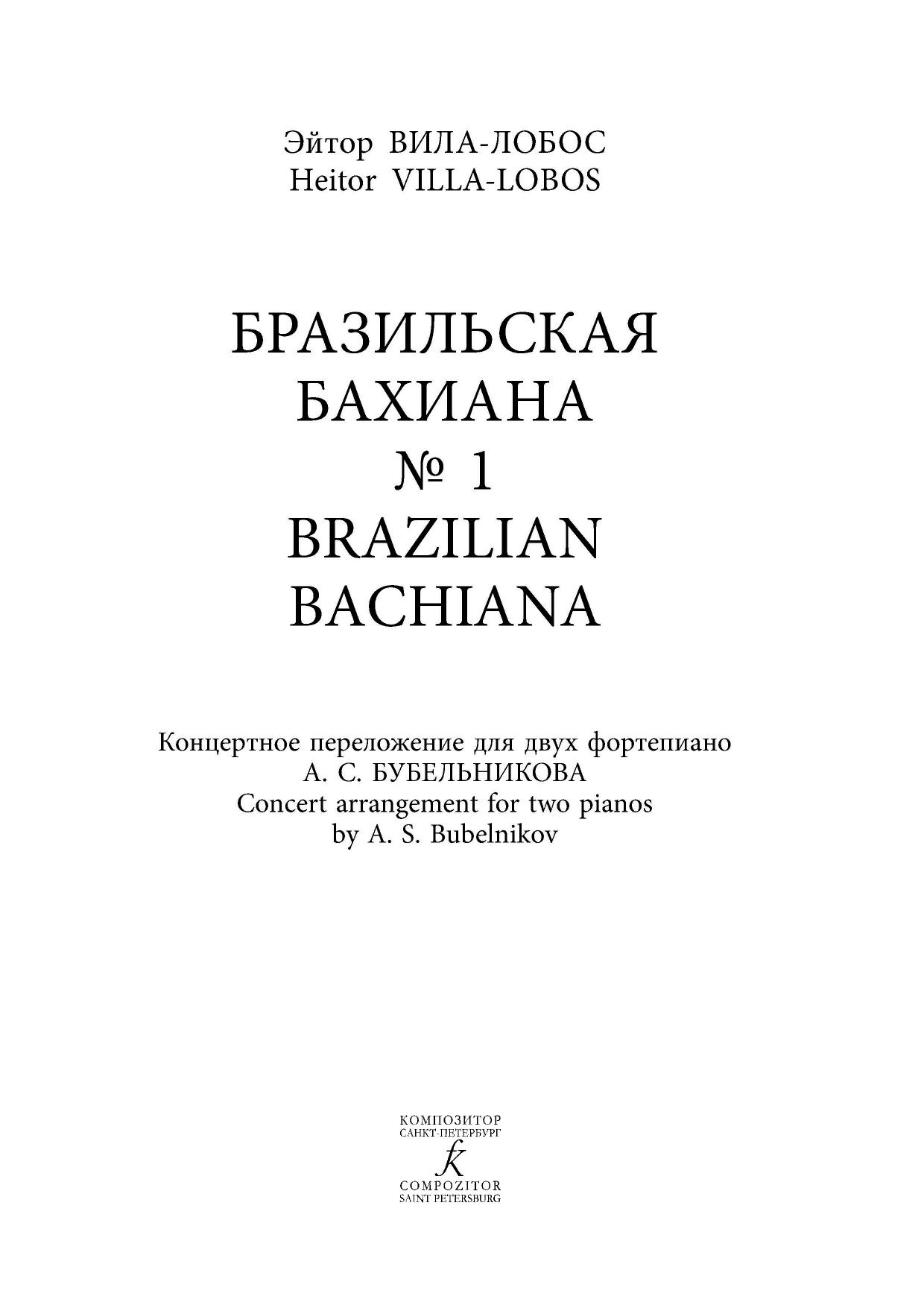 Бразильская Бахиана № 1. Концертное переложение для 2 фортепиано А. С. Бубельникова