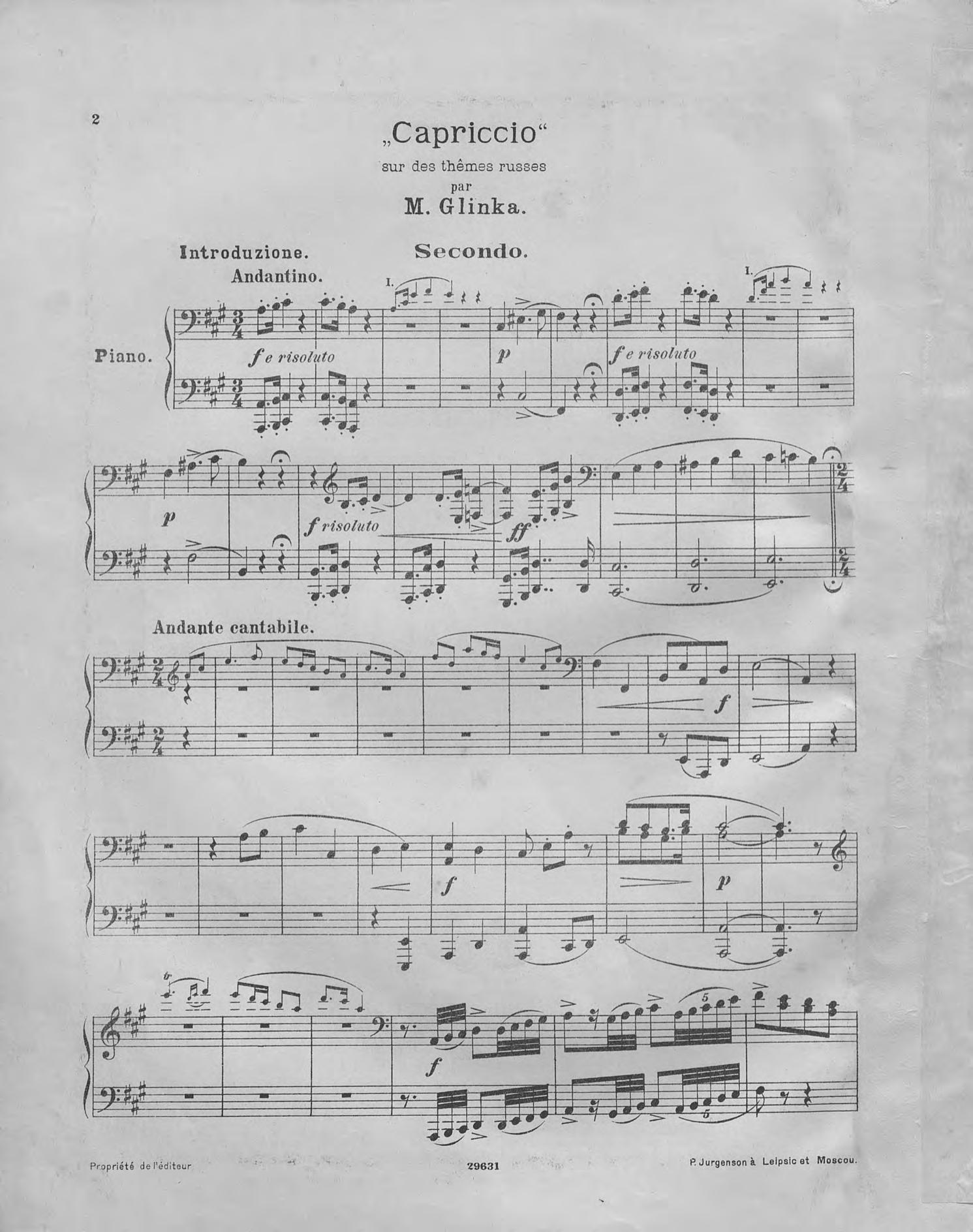Capriccio sur des themes russes pour piano e 4 ms, comp. en 1834 par M. Glinka
