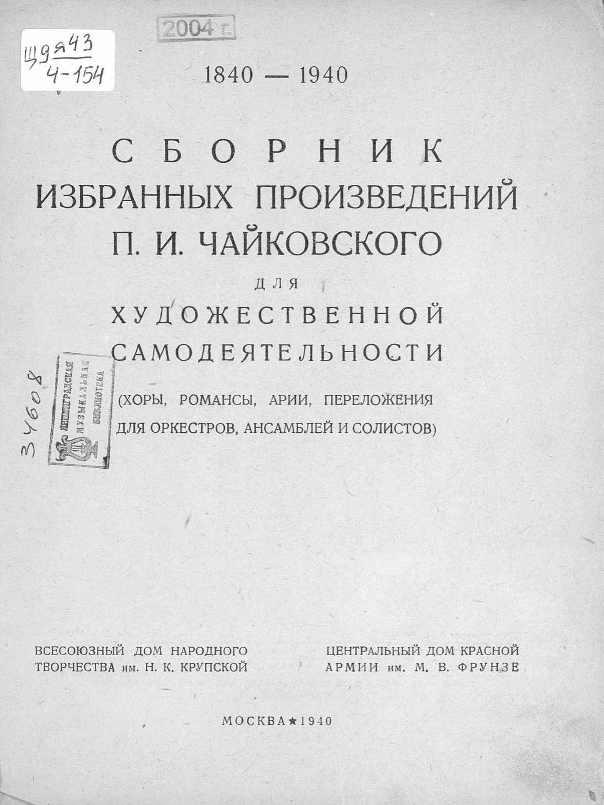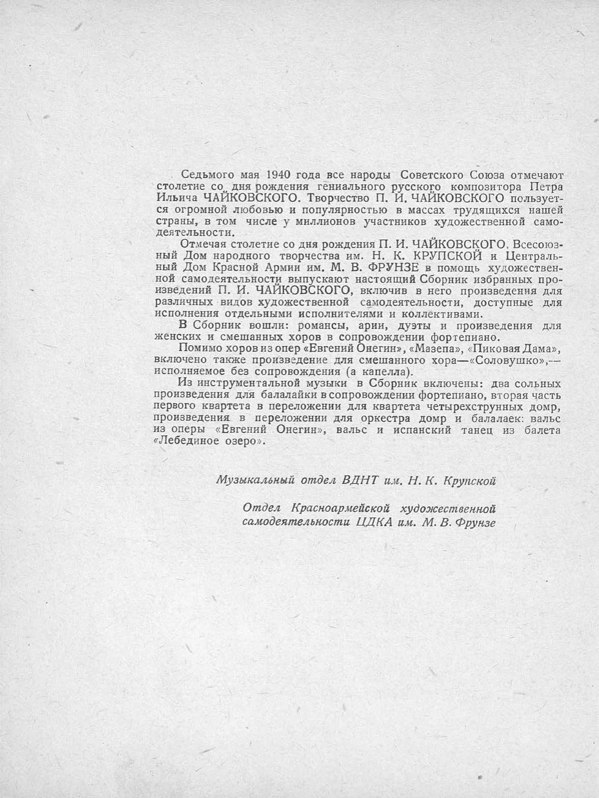 Cборник избранных произведений П. И. Чайковского для художественной самодеятельности