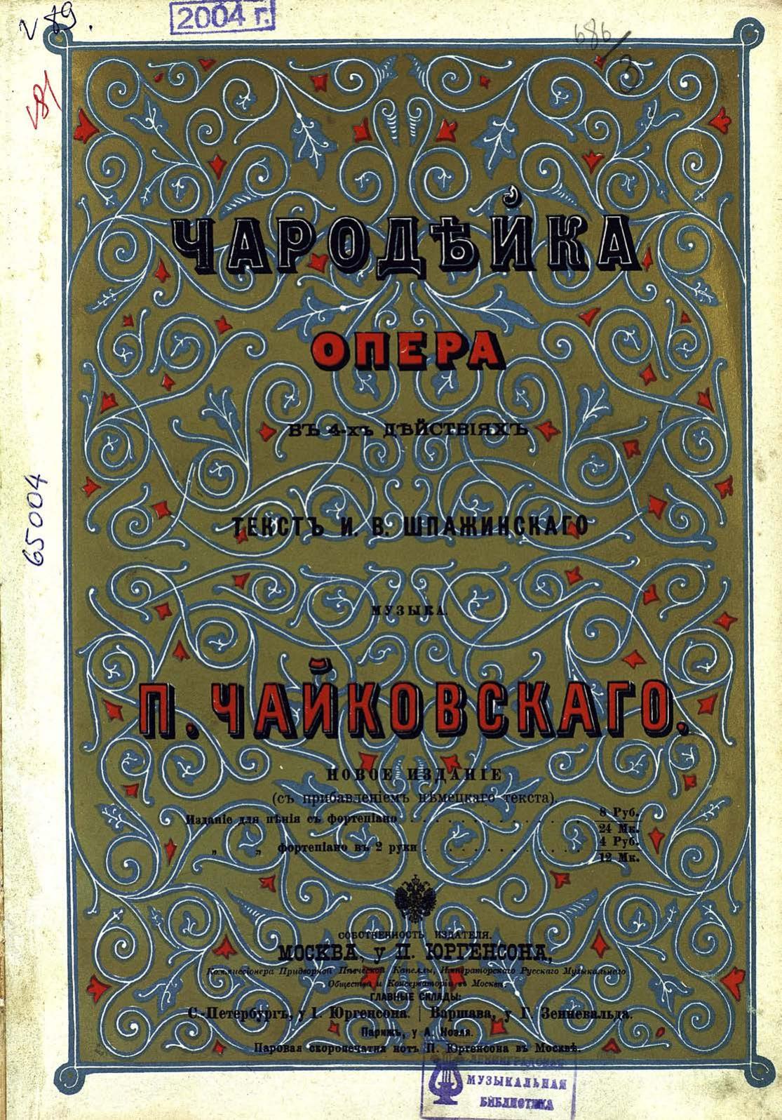 Перешедшие в общественное достояние материалы электронного фонда ЦГПБ им. В.В. Маяковского. Сведения о издательстве или типографии: П. Юргенсон. Место издания: Москва