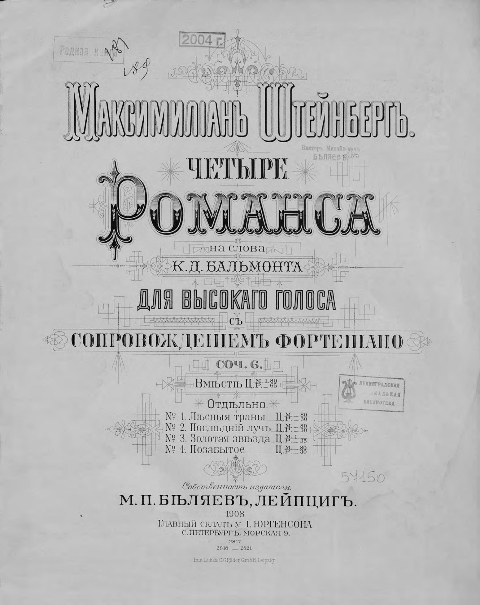 Перешедшие в общественное достояние материалы электронного фонда ЦГПБ им. В.В. Маяковского. Сведения о издательстве или типографии: Беляев. Место издания: Лейпциг