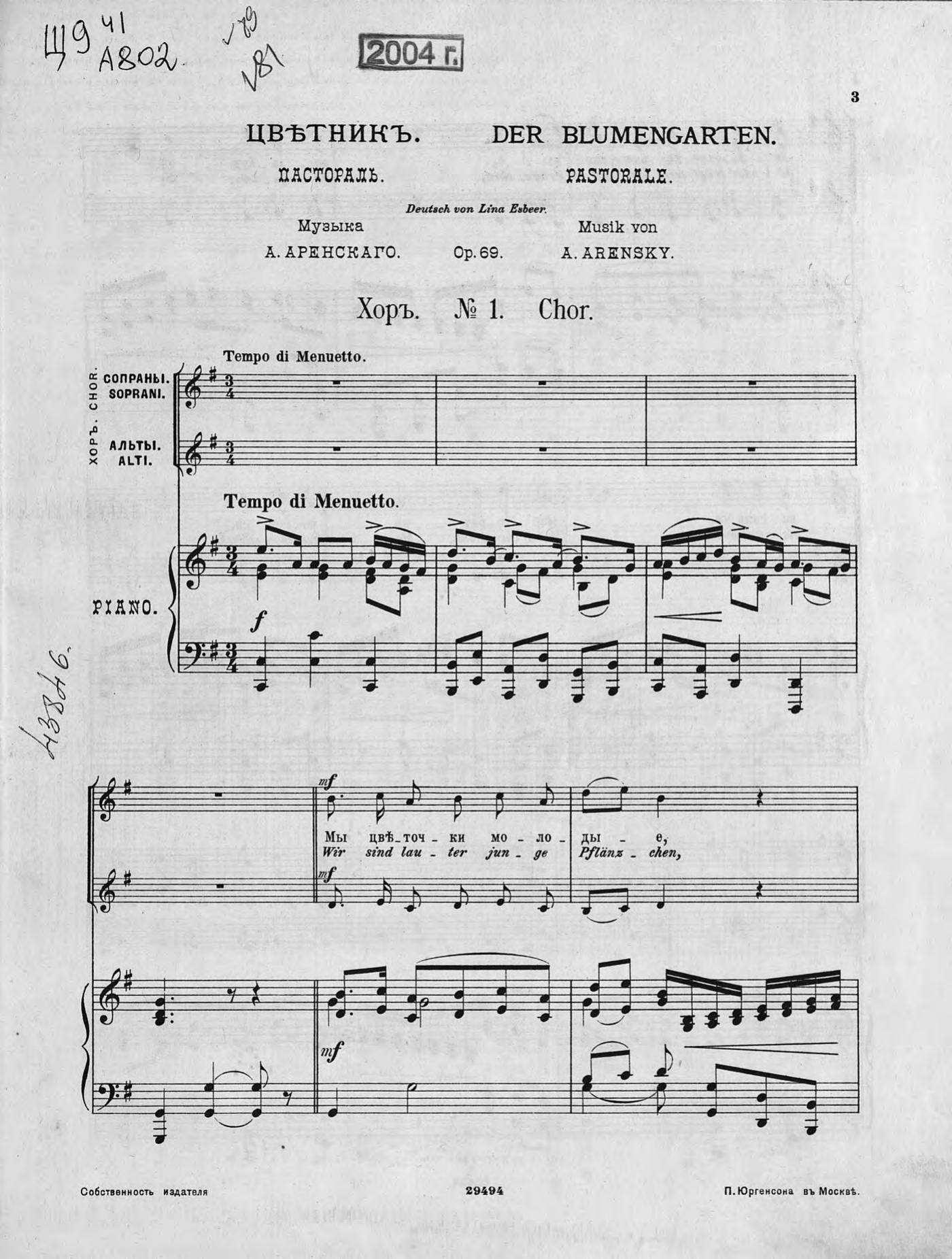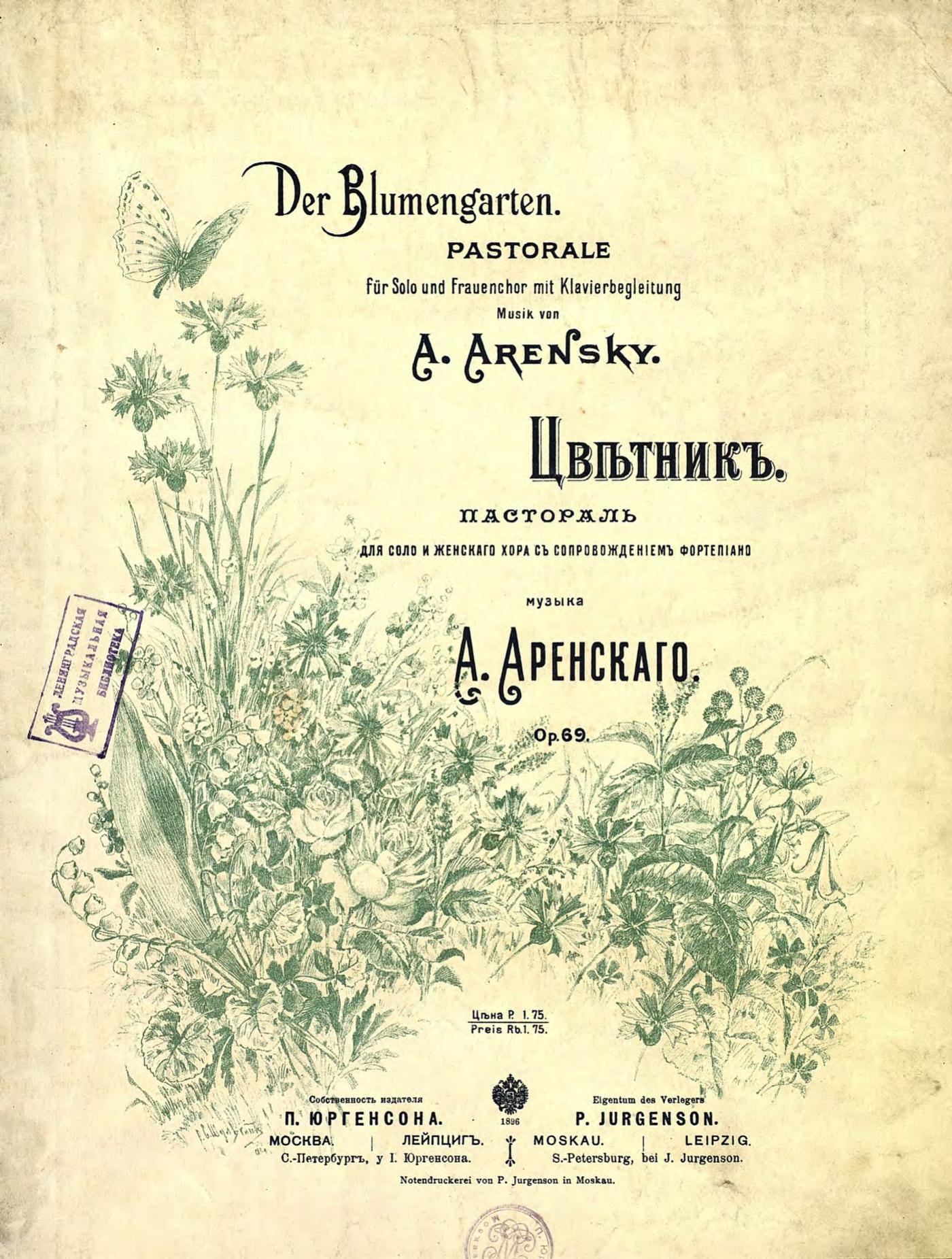 Перешедшие в общественное достояние материалы электронного фонда ЦГПБ им. В.В. Маяковского. Сведения о издательстве или типографии: П. Юргенсон. Место издания: Москва