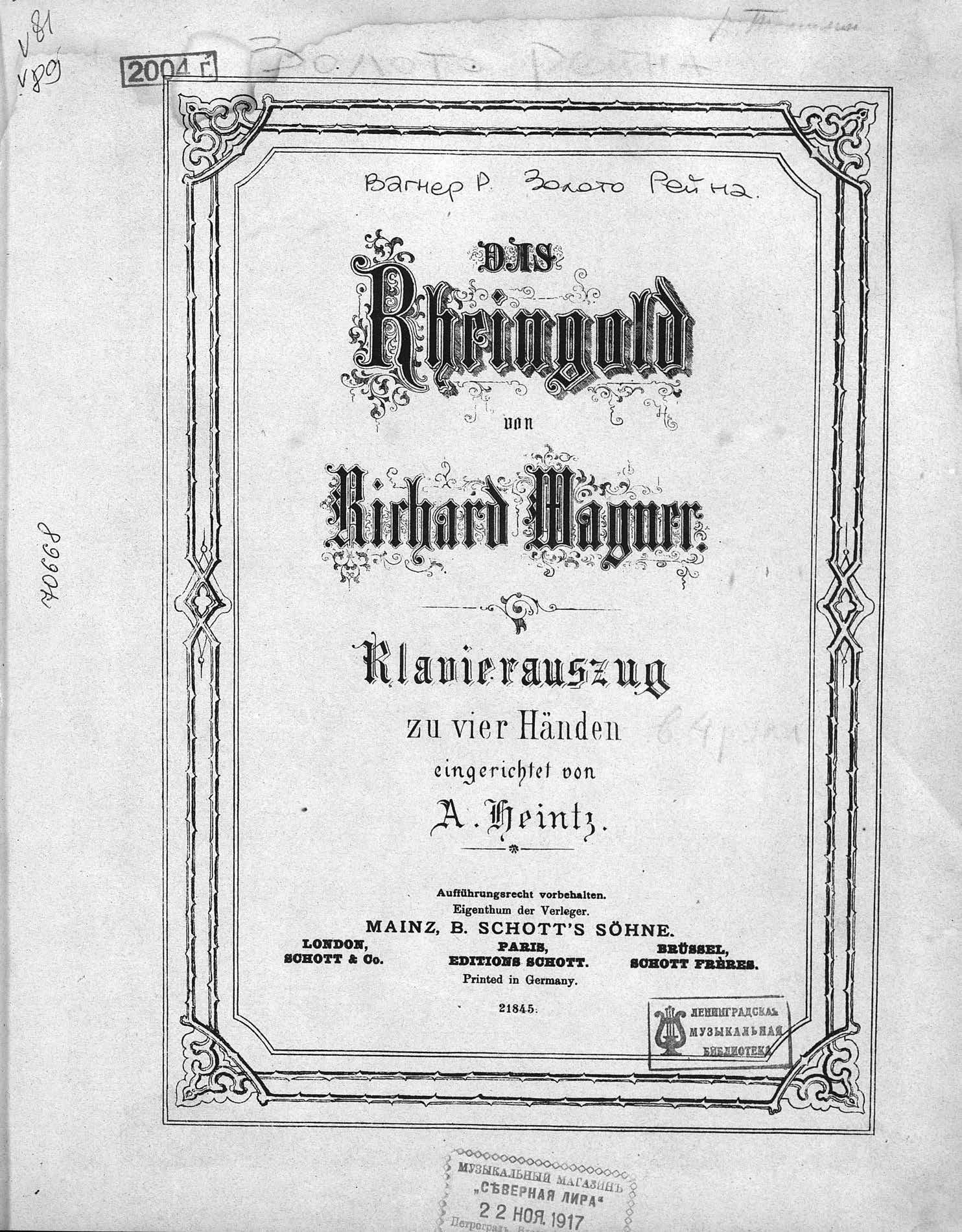 Перешедшие в общественное достояние материалы электронного фонда ЦГПБ им. В.В. Маяковского. Сведения о издательстве или типографии: B. Schott's Sohne. Место издания: Майнц