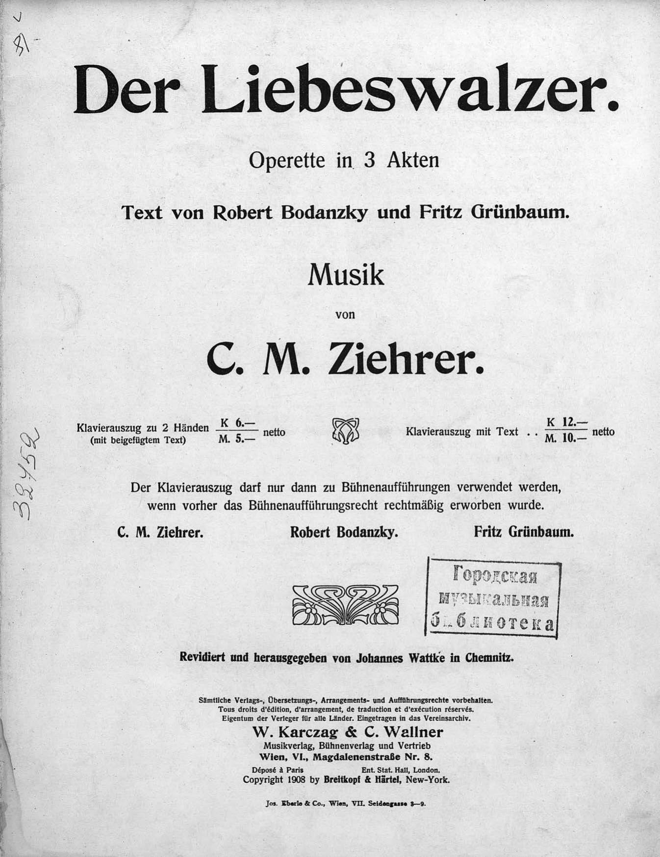 Перешедшие в общественное достояние материалы электронного фонда ЦГПБ им. В.В. Маяковского. Сведения о издательстве или типографии: W. Karczag & C. Wallner. Место издания: Вена
