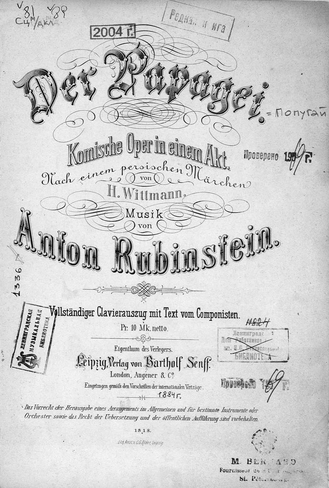 Перешедшие в общественное достояние материалы электронного фонда ЦГПБ им. В.В. Маяковского. Сведения о издательстве или типографии: Senff. Место издания: Лейпциг