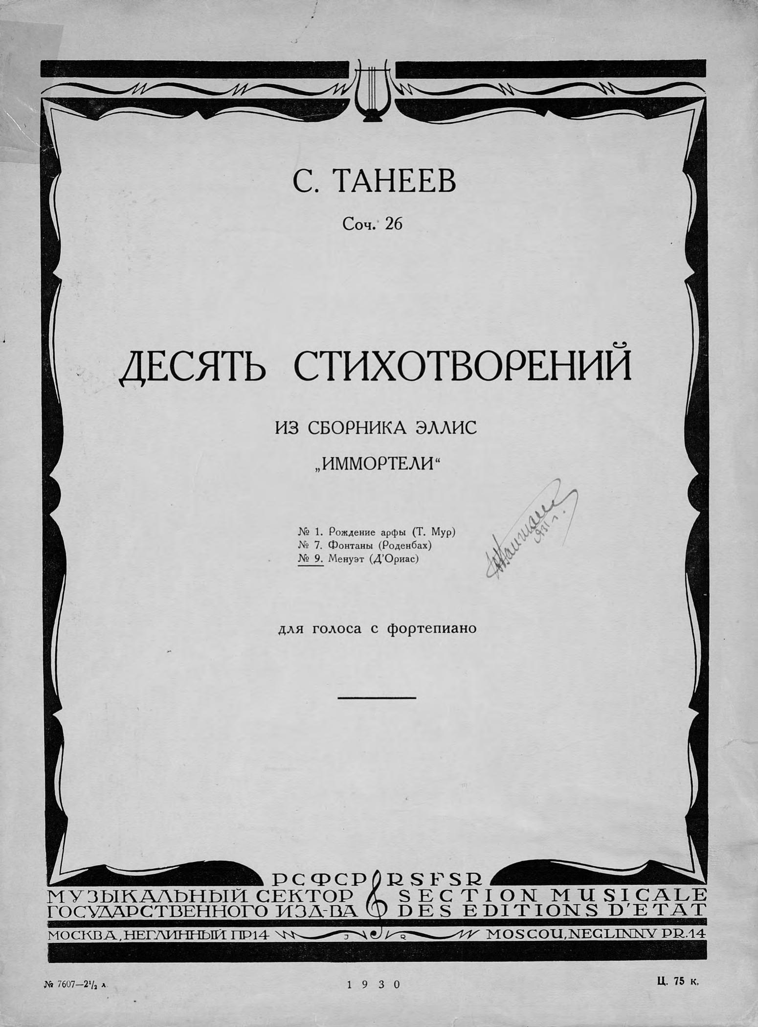 Десять стихотворений из сборника Эллис "Иммортели" для голоса с фортепиано