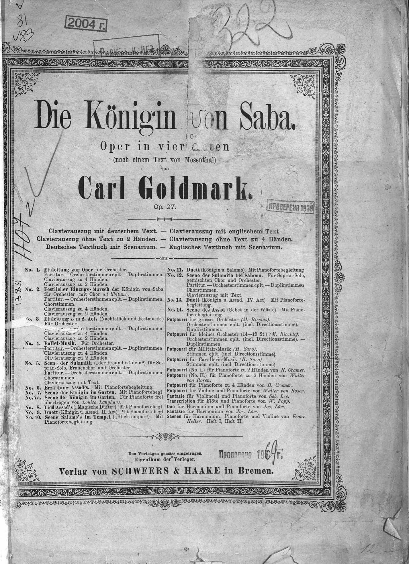 Перешедшие в общественное достояние материалы электронного фонда ЦГПБ им. В.В. Маяковского. Сведения о издательстве или типографии: Verlag von Schweers & Haake. Место издания: Бремен