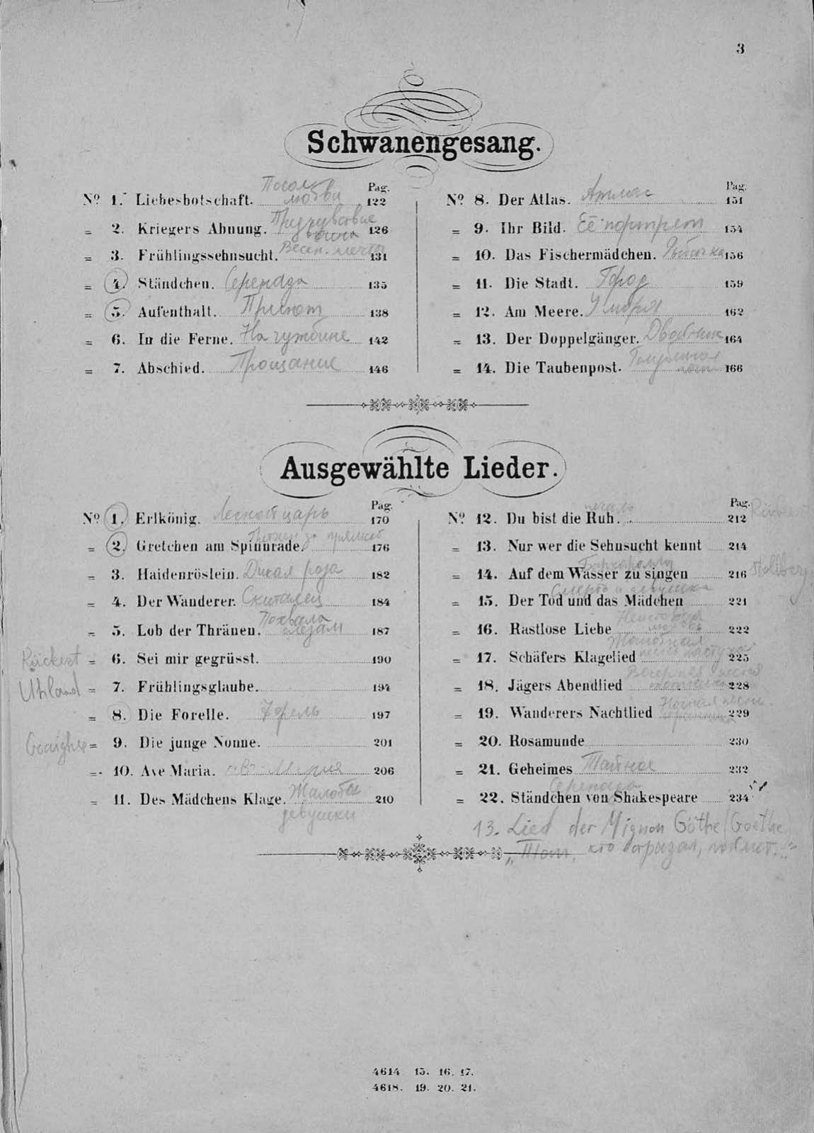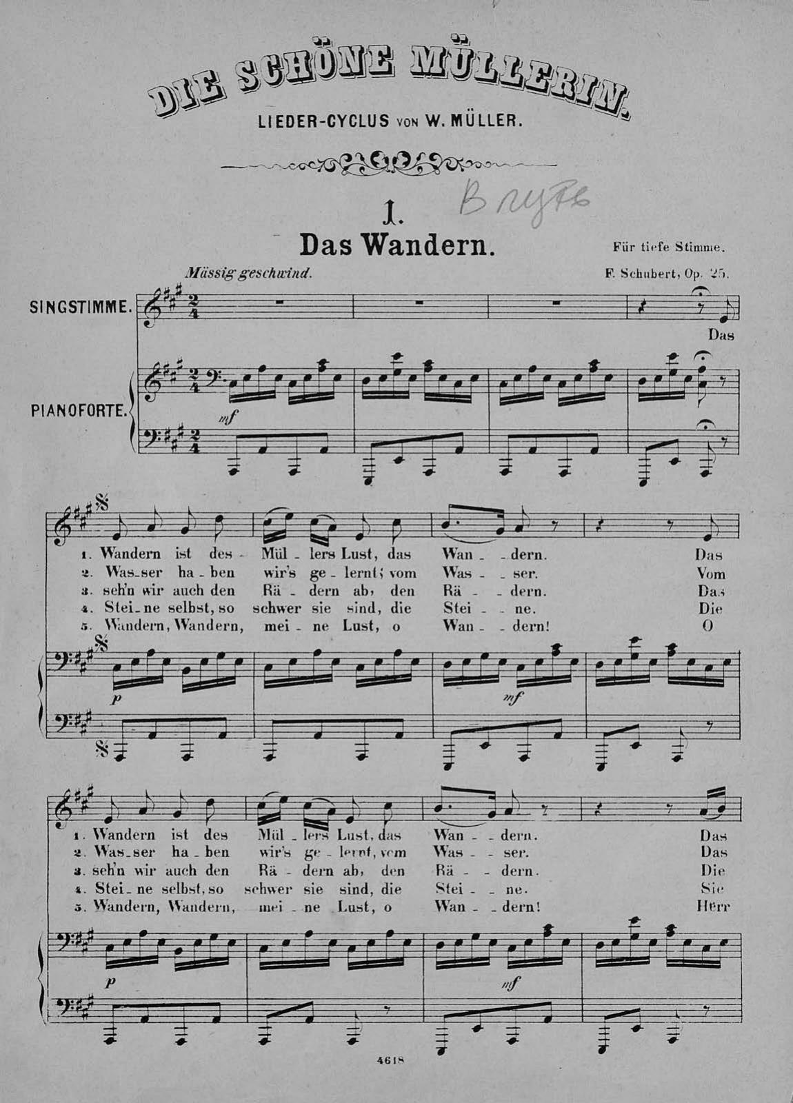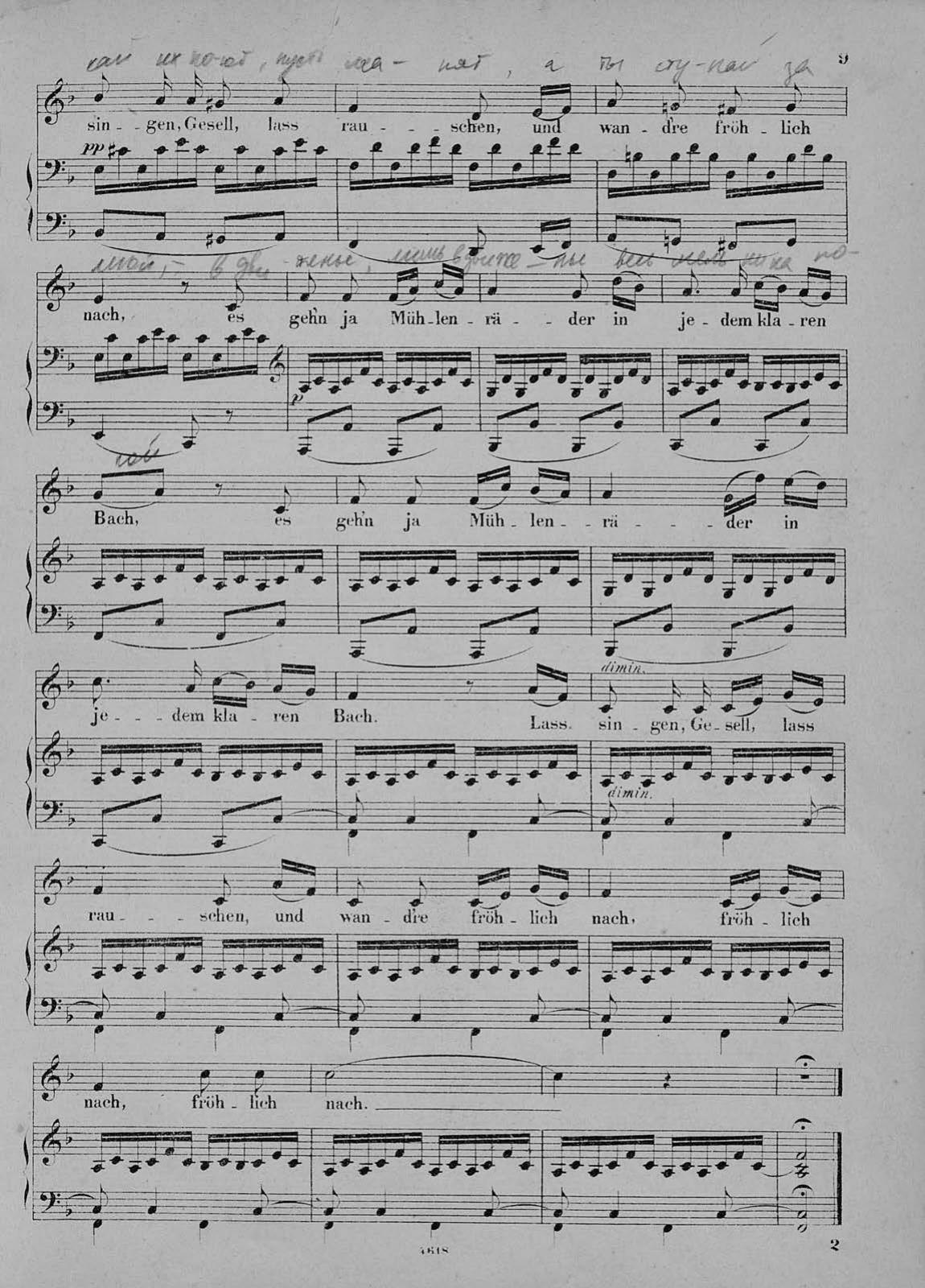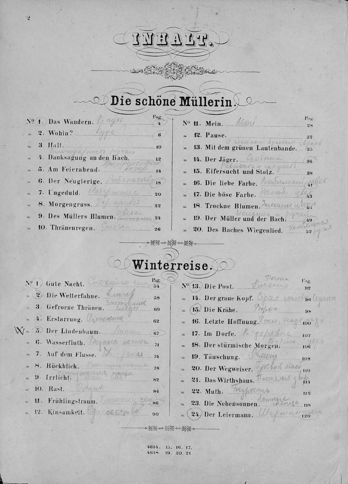 Die schone Mullerin, Winterreise, Schwanengesang ung 22 heruhmte Lieder fur eine Singstimme mit Pianofortebeitung comp. v. Fr. Schubert