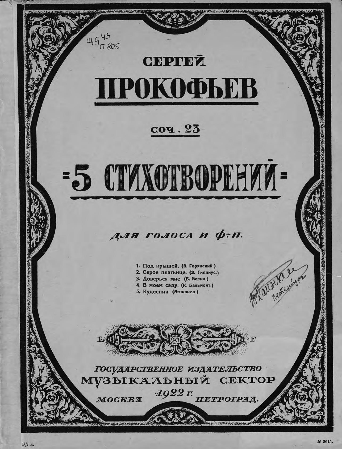 Перешедшие в общественное достояние материалы электронного фонда ЦГПБ им. В.В. Маяковского. Сведения о издательстве или типографии: Госиздат, Музсектор. Место издания: Москва