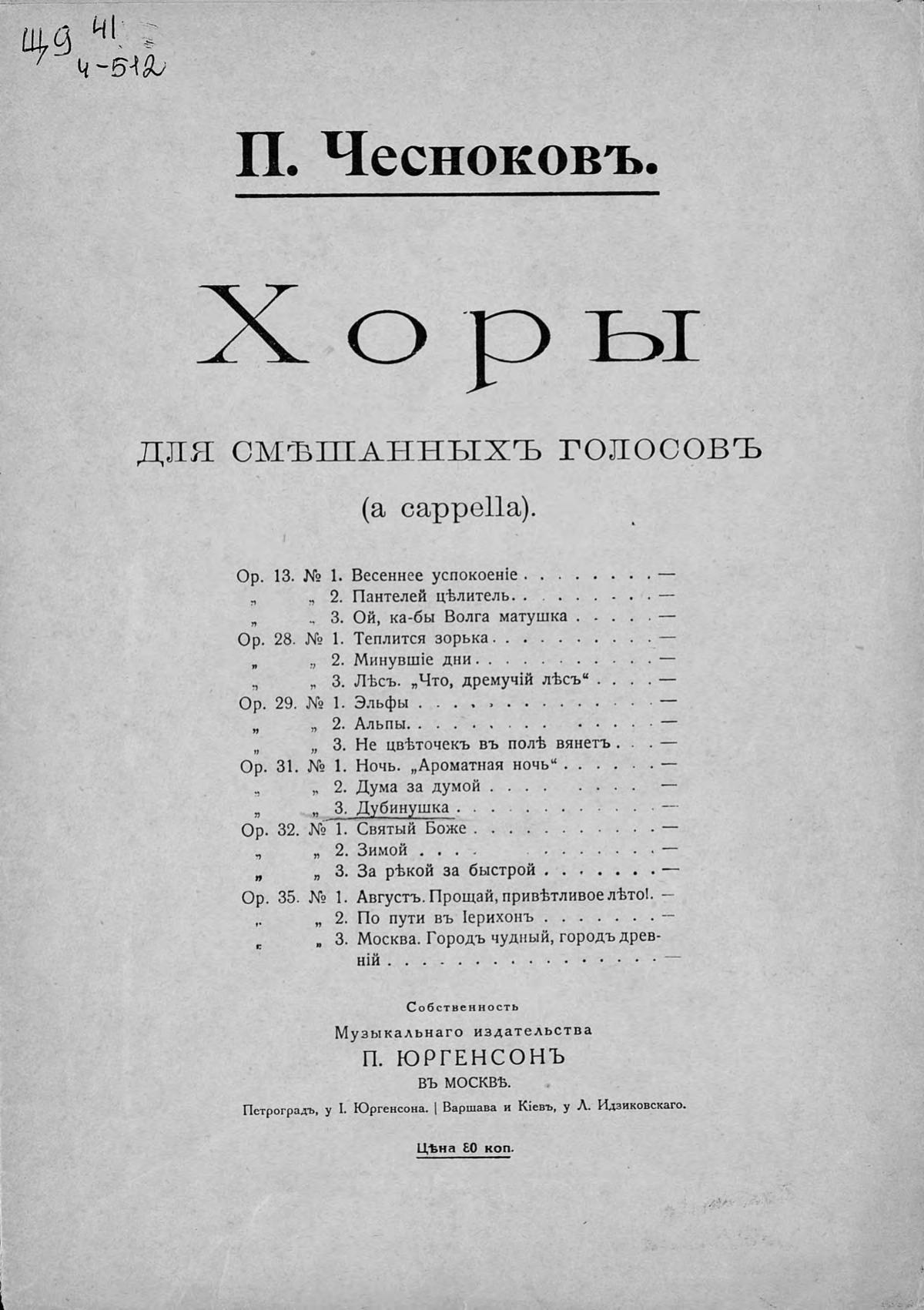 Перешедшие в общественное достояние материалы электронного фонда ЦГПБ им. В.В. Маяковского. Сведения о издательстве или типографии: П. Юргенсон. Место издания: Москва