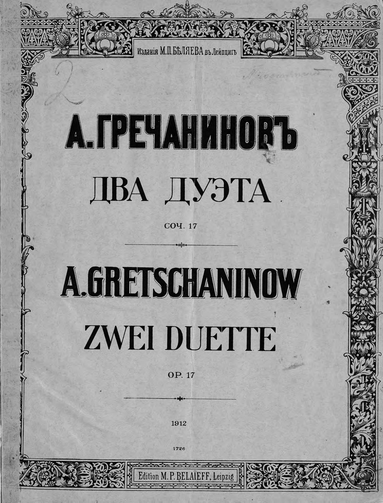 Два дуэта [с сопровождением фортепиано]